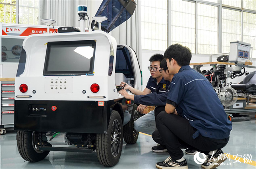 合肥职业技术学院“蔚来班”学生进行实操训练。人民网记者 王锐摄