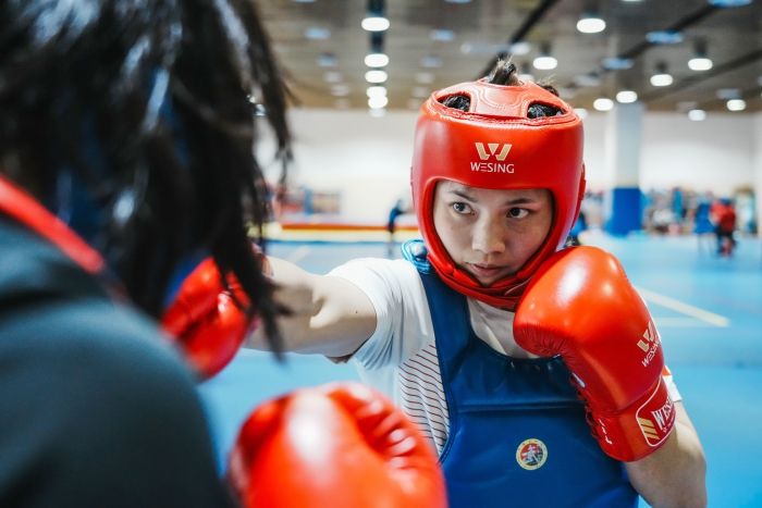 今年4月的武术散打世界杯,堪称顶尖选手的“终极对决”——来自26个国家和地区的近200名运动员中,既有世锦赛前四名的“种子选手”,也有通过全球选拔赛突围的新锐力量。在对突尼斯选手的三局比赛中,朱海兰以2比0的局分,提前获胜,在对土库曼斯坦队选手的比赛中,她以单局分差超过12分的绝对优势,使裁判提前终止比赛。在朱海兰眼中,散打从来不是单纯的力量对决,而是脑力与体力的双重博弈。她坦言,从拳击转型散打的初期,正是这种“斗智斗勇”的挑战让她十分着迷。训练的日子里,她一直在钻研摔法,对着训练馆的镜子拆解每一个接腿摔的发力细节,日复一日进行技术打磨。