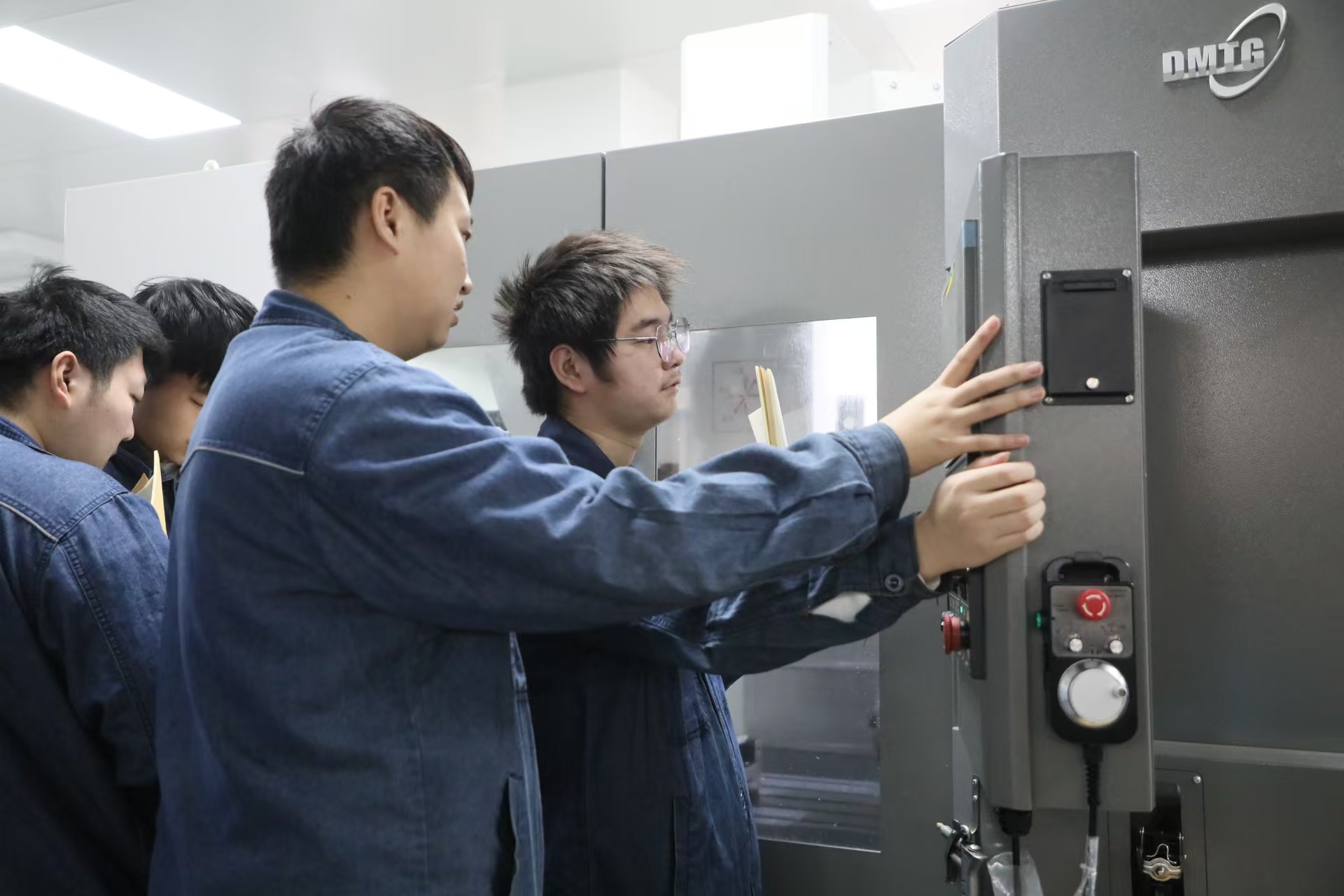 走进郑州技师学院智能数控加工中心,数控铣床正嗡嗡地响着。身穿深蓝色制服的学生四人一组,熟练地在机器上启动数控系统,执行预设的加工程序……