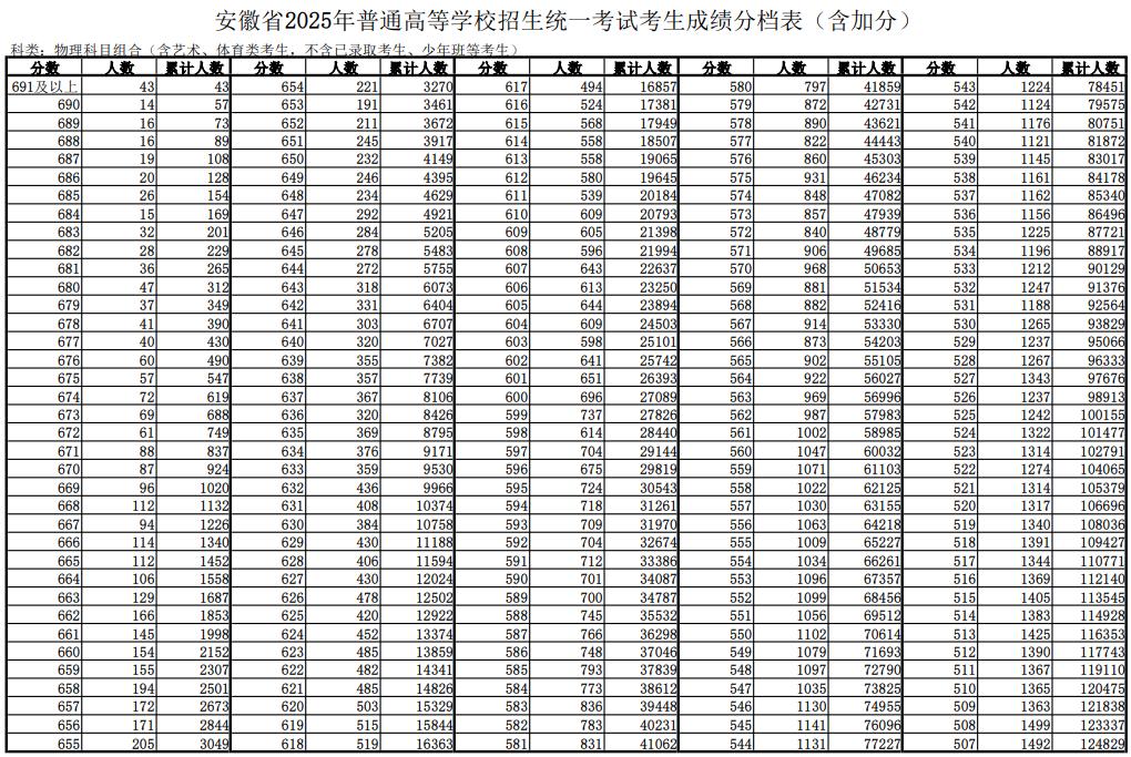 2025安徽高考考生成绩分档表发布了!