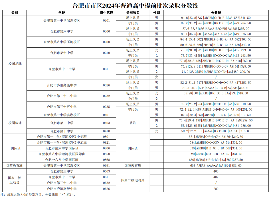 7月15日,合肥市教育考试院公布合肥市市区2024年普通高中提前批次录取情况及录取分数线。
