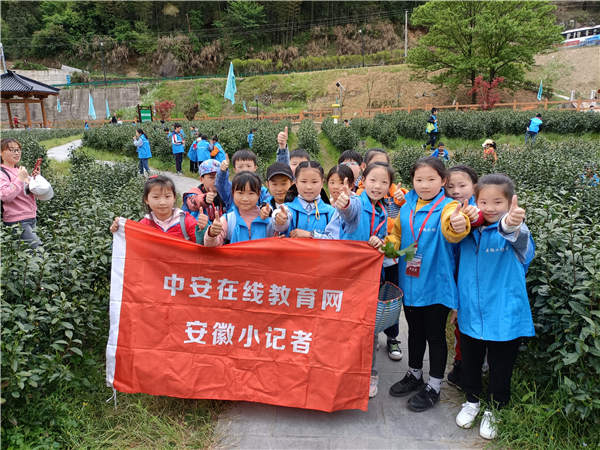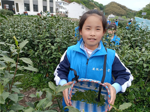 4月18日,安徽全媒体小记者走进霍山宋家河,用自己的双手亲自采摘鲜叶,交给师傅,炒烘出新的“六安瓜片”茶。