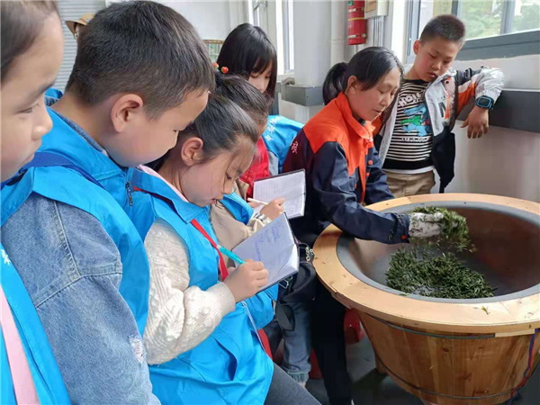 在听完现场制作师傅的介绍后,小记者们茅塞顿开。“原来一片茶叶制作需要杀青、理条、烘干、拼配、风选等多道工序,真不容易啊!”小记者戚月感叹道。