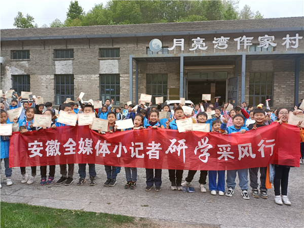 为了丰富活动内容,当天下午,小记者们又参观了霍山月亮湾作家村,这个村是由原三线厂改造而成,依照原貌改建,别具一格,作家村成立之初,王蒙、许辉等一百多位作家亲临现场。今天,小记者们带着欢快的步伐来到大厅,现场满屋书香与古朴的风格让小记者们不禁翻出了书本,顿时融入到了知识的海洋里。