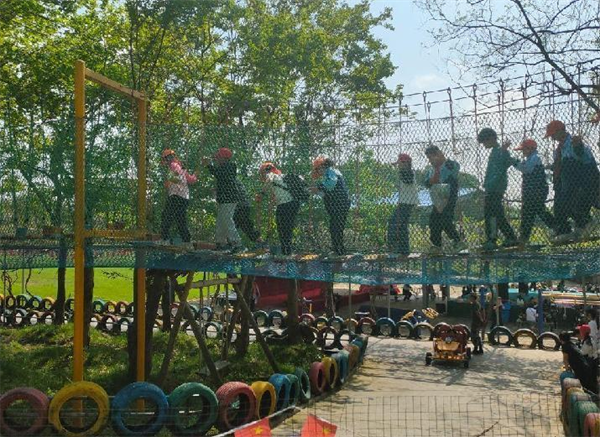 实践军事训练,增强身体素质。下午,师生们来到六安小龙生态园进行了一次意义非凡的素质拓展训练。活动旨在锻炼大家的团队协作能力,提高个人综合素质,增强大家的自信心。在这里,每一个人都是自己的队友,大家互相帮助,勇敢地面对所有的挑战,不断超越自我。学生们先体验了一下攀岩项目,这个项目既刺激又危险,但是所有人都非常努力,没有一个人放弃。接着,他们又进行了过桥和彩虹滑道等项目,这些项目都需要大家的勇气和智慧,只有大家齐心协力,才能顺利完成。