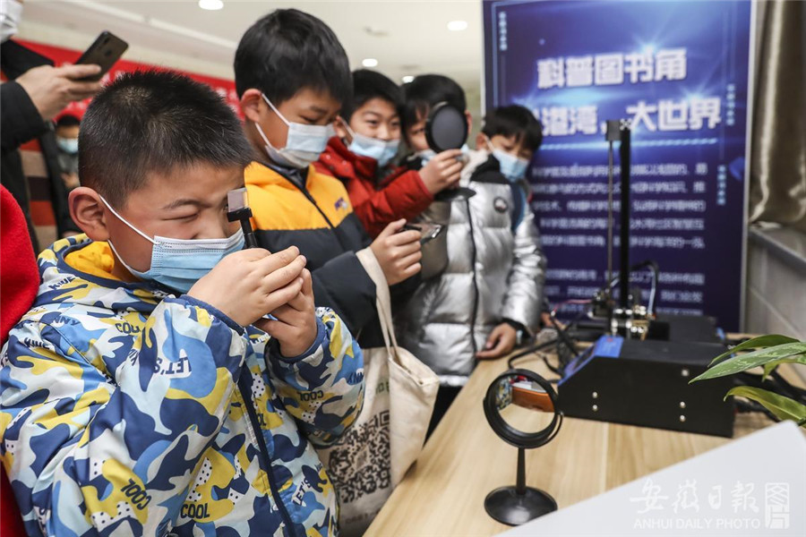 2月28日,合肥市蜀山区科协在荷叶地街道浅水湾社区开展“魅力蜀山 全民科普行”活动。现场,青少年通过实际操作体验,了解科普知识,开拓视野。记者 范柏文 摄