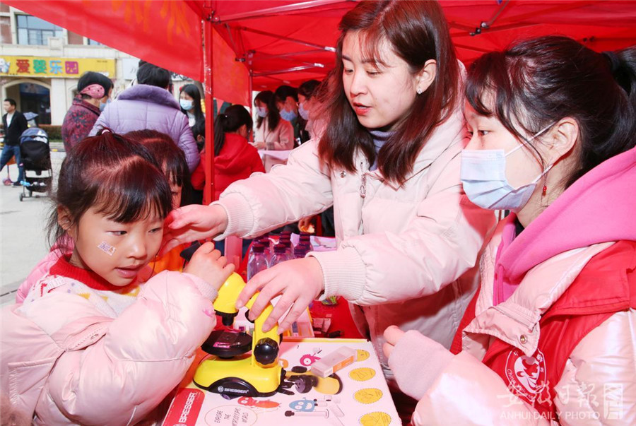 3月6日下午,安徽省合肥高新区祥湖社区祥源城志愿服务广场,小学生在环保科普志愿者指导下用显微镜观察植物学习科普知识。当日,合肥市高新区2021年学雷锋志愿服务月启动,环保、法治、医疗等数十种志愿服务为居民义务服务。本报通讯员 傅军 摄
