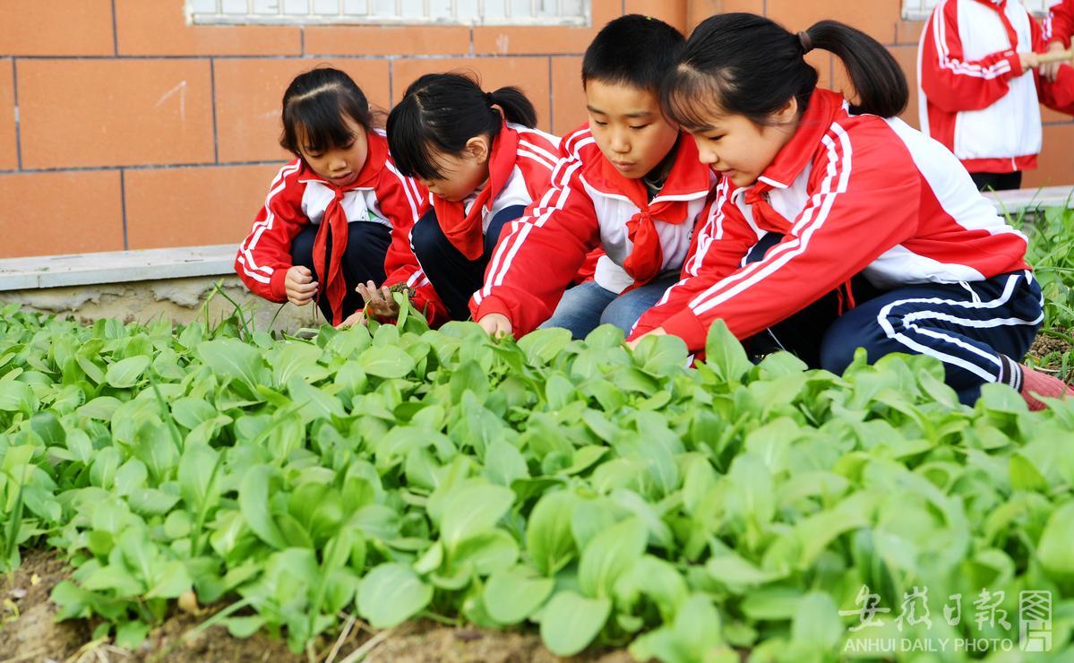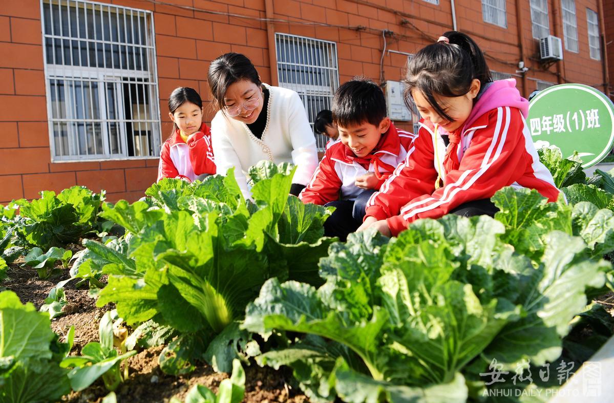 11月16日,肥东县马集学校小学部的学生们,在老师的带领下,沐浴冬日阳光,学习农作物种植技术,自己动手,学农习农。 该校专门在校内为学生们按班级规划“实验田”,让孩子们根据时令进行农作物栽培,白菜、萝卜、西瓜等农作物的收获让孩子们心满意足。肥东县在中小学推广因材施教特色技艺课外活动,组织学生学习农艺、特色体育、科普实验等课程,提升学生综合素质。记者 杨竹 摄