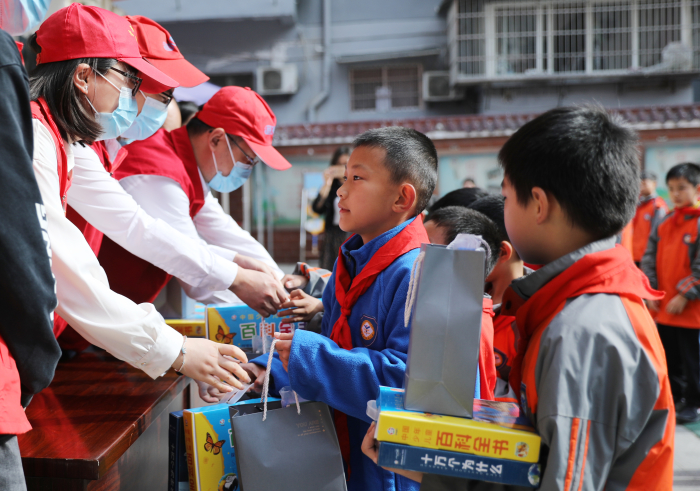 近日,来自市委组织部、市供水集团等单位志愿者去往学校为学生送去书籍及学习用品,鼓励学生好读书、读好书,带动和影响家长和社区居民读书,共建书香校园、书香家庭、书香社会。(记者 徐火炬 通讯员 王佳 摄)