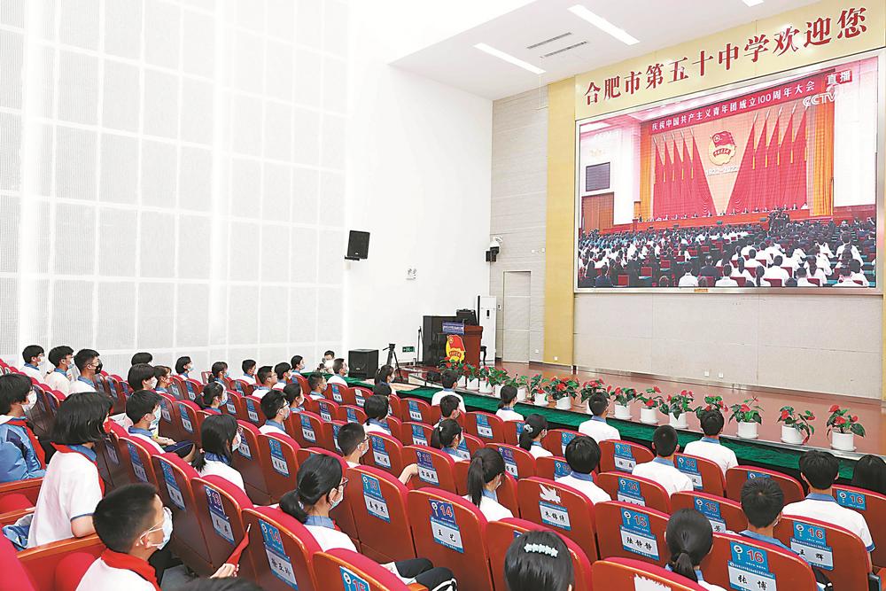 5月10日上午,合肥市蜀山区笔架山街道团工委联合合肥市五十中新校团委,组织该校共青团员观看庆祝中国共产主义青年团成立100周年大会直播,并通过重温入团誓词、唱团歌等形式激发广大共青团员刻苦学习、艰苦奋斗的责任感和使命感。