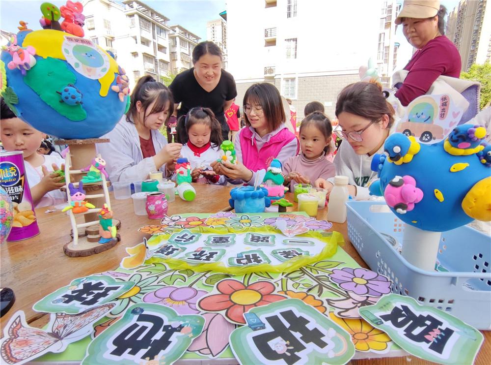 4月15日,六安市裕安区平桥乡金马社区新时代文明实践站,志愿者和老师带领小朋友利用废旧物品制作地球模型,让大家从小树立保护环境、爱护地球的意识。通讯员 田凯平 摄