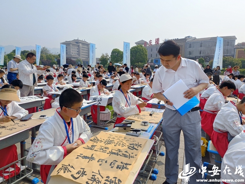 中安在线、中安新闻客户端讯 4月20日,第四届“着汉服写家风”百名学生现场书法比赛活动在东至县新时代文明实践中心广场举行,来自全县三所初中和四所小学共计150名中小学生参加现场比赛活动。本次活动的成功举办,是东至县“传承好家风 弘扬好家训”主题宣传教育活动的丰富呈现,为推进新时代文明实践起到积极作用。
