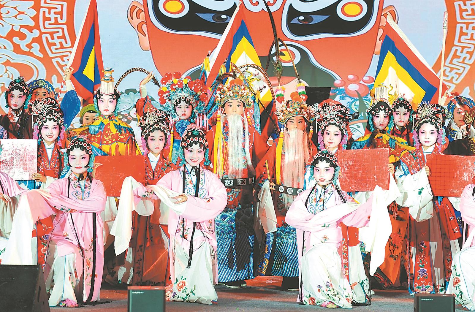 5月26日,合肥市和平小学瑶海湾分校,学生们正在进行戏曲表演。当天,合肥市和平小学举办校园文化艺术节迎接“六一”儿童节。通讯员 熊伟 摄
