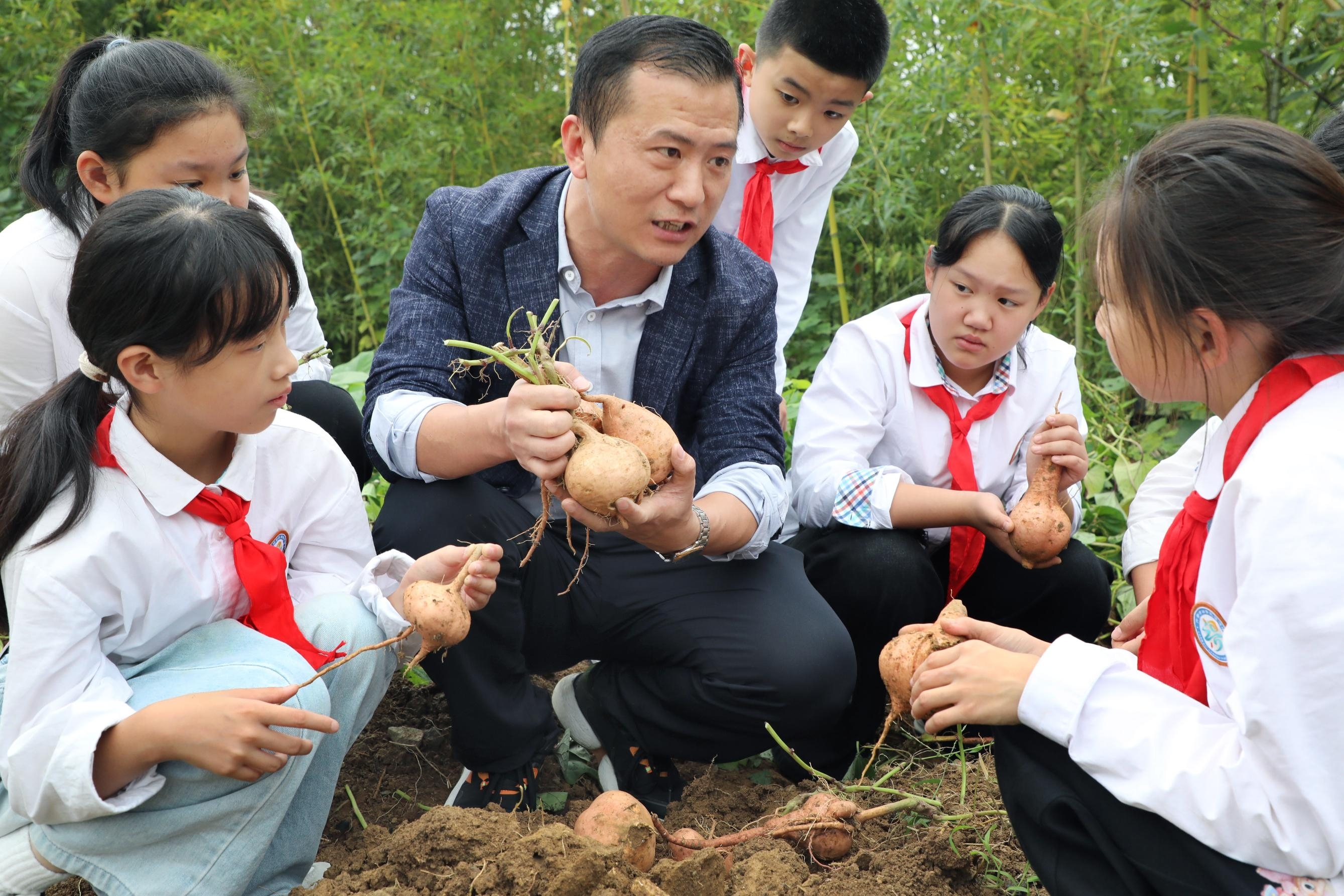 10月14日,六安市裕安区淠河小学的老师在学校“早竹园”劳动实践基地带领同学们挖红薯,通过开展农事体验劳动,引导孩子们自觉传承勤俭美德。本报通讯员 田凯平 罗成 摄