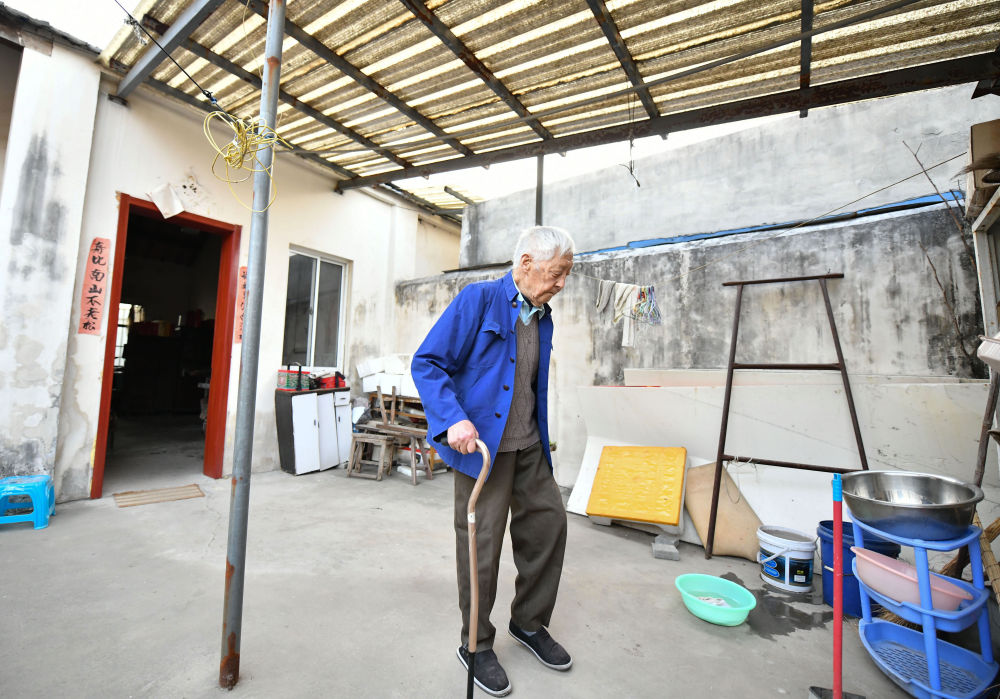 ↑4月9日清晨,叶连平准备离开家前往“留守未成年人之家”。