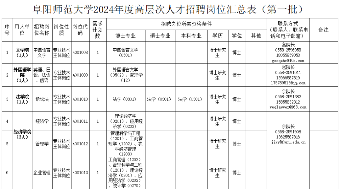 阜阳师范大学2024年度高层次人才招聘公告(第一批)