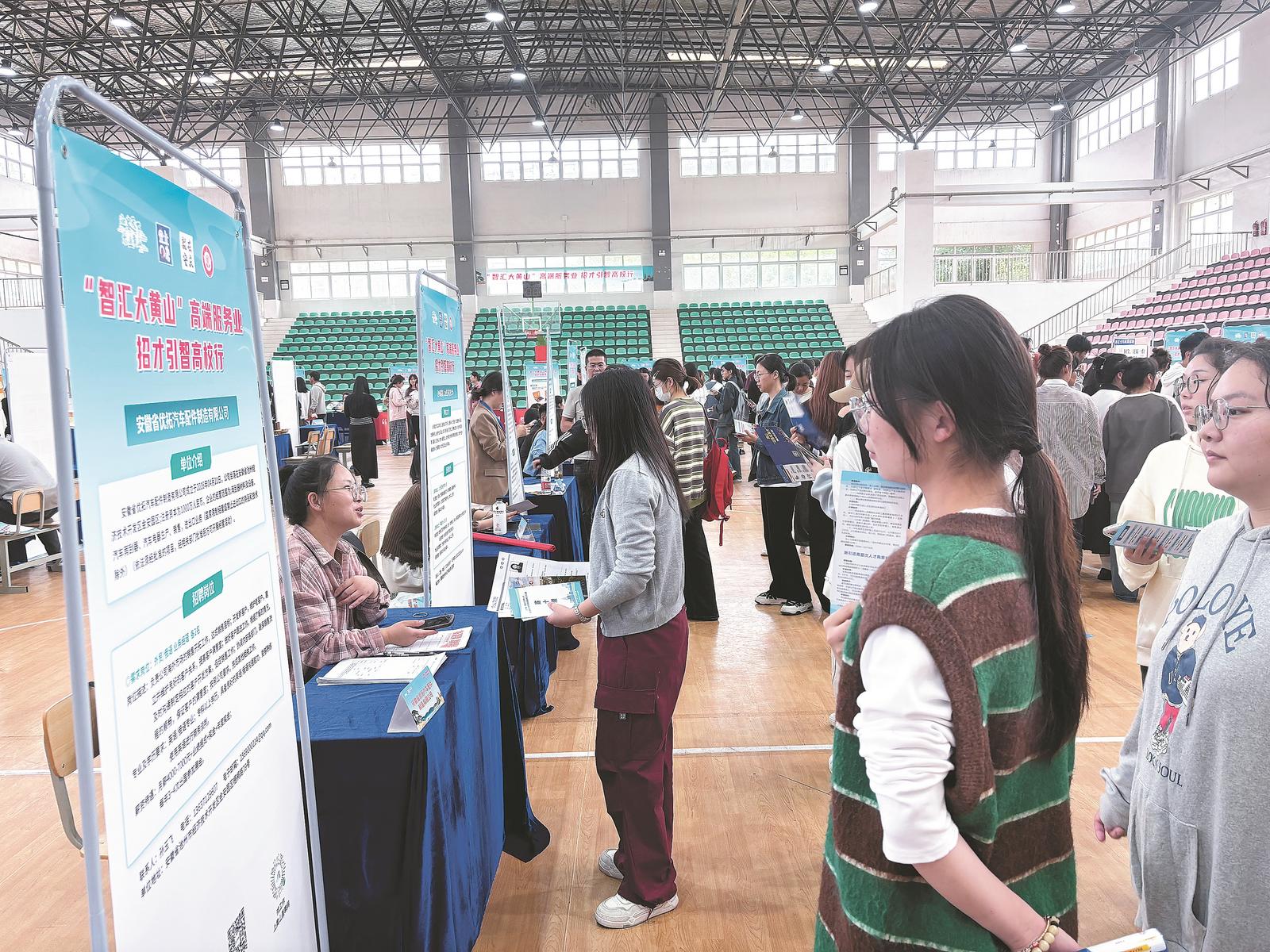 在现场设立的大黄山创业集市中,18个创业项目集中展示,让毕业生们直观感受了大黄山地区良好创新创业环境。据统计,本次招才引智活动有524名毕业生与企业达成就业意向。(记者 陈婉婉)