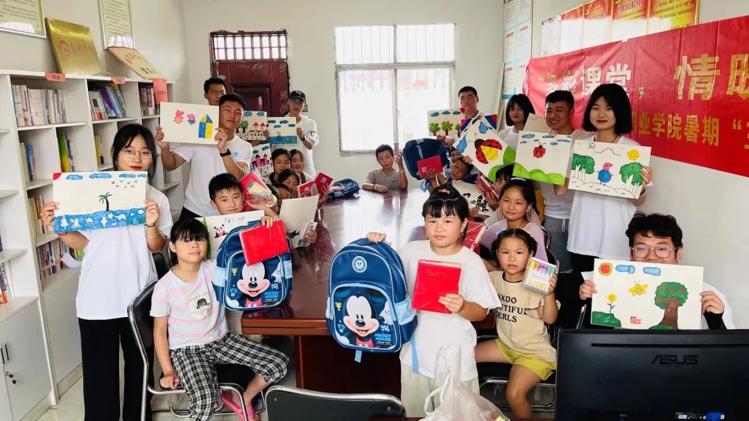 带着孩子们上了三天以“我和我的祖国”主题的音乐课、以“我的家乡”主题的美术课、以“反电诈防溺水”为主题安全教育课,并和小学生们一起参观村里的法治广场、种植大棚,体验乡村振兴的发展成果……这个夏天,安徽警官职业学院的同学们走出校园、走向乡村、走进企业、走入基层、走上抗疫第一线,开展2022年暑期文化科技卫生“三下乡”社会实践活动,在田间地头上了一节“思政课”。根据团中央、团省委的工作部署,安徽警官职业学院团委在今年暑假期间组织大学生志愿者前往阜阳市临泉县老集镇开展暑期“三下乡”实践活动,并举行了启动仪式,院党委副书记胡爱国出席并讲话。