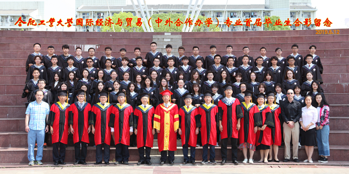 近日,合肥工业大学首个中外合作办学项目国际经济与贸易(中外合作办学)专业首届毕业生顺利毕业,该校党委常委、副校长刘志峰出席毕业典礼暨学士学位授予仪式,并与毕业生合影留念。