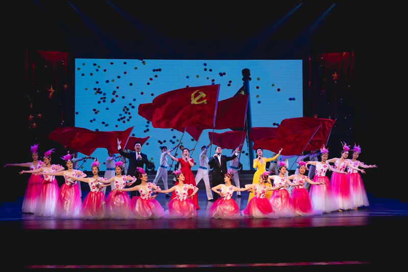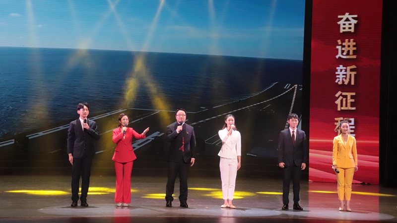 发间、手腕缠绕的一条条红丝带,在轻盈的腾空和坚定的挥扬里汇成壮阔的浪潮,外化心中火热的红;rap搭配机器人跳舞,满满的青春动感中唱出创新之城的活力勃发;薛家洼的芦苇荡和渔网也搬上了舞台,讲述着“三姑娘”上岸的故事……