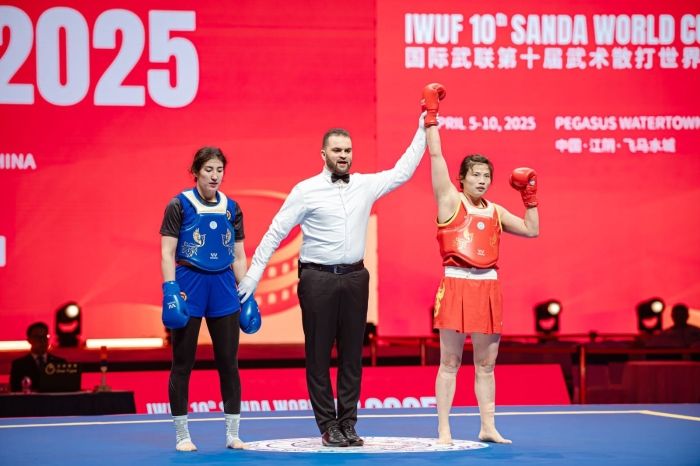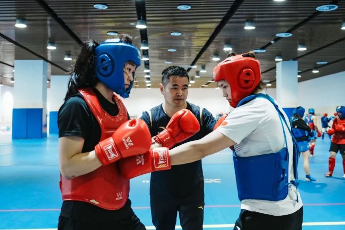 今年4月的武术散打世界杯,堪称顶尖选手的“终极对决”——来自26个国家和地区的近200名运动员中,既有世锦赛前四名的“种子选手”,也有通过全球选拔赛突围的新锐力量。在对突尼斯选手的三局比赛中,朱海兰以2比0的局分,提前获胜,在对土库曼斯坦队选手的比赛中,她以单局分差超过12分的绝对优势,使裁判提前终止比赛。在朱海兰眼中,散打从来不是单纯的力量对决,而是脑力与体力的双重博弈。她坦言,从拳击转型散打的初期,正是这种“斗智斗勇”的挑战让她十分着迷。训练的日子里,她一直在钻研摔法,对着训练馆的镜子拆解每一个接腿摔的发力细节,日复一日进行技术打磨。
