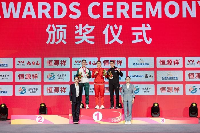 宋庆伟教练(中)指导朱海兰(右)训练她曾想过放弃:“是不是该算了?”随后的日子里,教练和队友们用行动默默支持着她,这让她又有了继续下去的勇气。“既然留下,就把自己拧成一股绳。”朱海兰把这句话写在训练日志里。每天清晨,她第一个推开训练馆的门,把护具按顺序摆放在固定位置;傍晚最后一个离开时,总要检查一遍墙上的战术板。她研究对手录像到凌晨,把每个细节记在便签上,贴满宿舍的镜子……那些在训练馆摔打的日夜,那些与冠军失之交臂的时刻,最终都成了身体里的肌肉记忆。直到2023年全国锦标赛的金牌第一次挂在她脖子上。那场决赛上,28岁的朱海兰在决胜局使出独创的"摆拳虚接侧踹"组合技,这套融合现代搏击理念的动作直接终结比赛。持续的技术革新,让朱海兰在普遍认为"25岁是女子散打运动员黄金年龄"的项目中逆势而上。2023年世锦赛的金牌余热未消,朱海兰便迅速投入到新的备战周期。凭借系统化训练和稳定的竞技状态,她在2024年迎来国内赛事的全面爆发:全国武术散打锦标赛中,她同时斩获个人赛与团体赛冠军;紧接着的冠军赛上,她延续强势表现,以压倒性优势再揽双冠,进一步巩固在国内的强势地位。