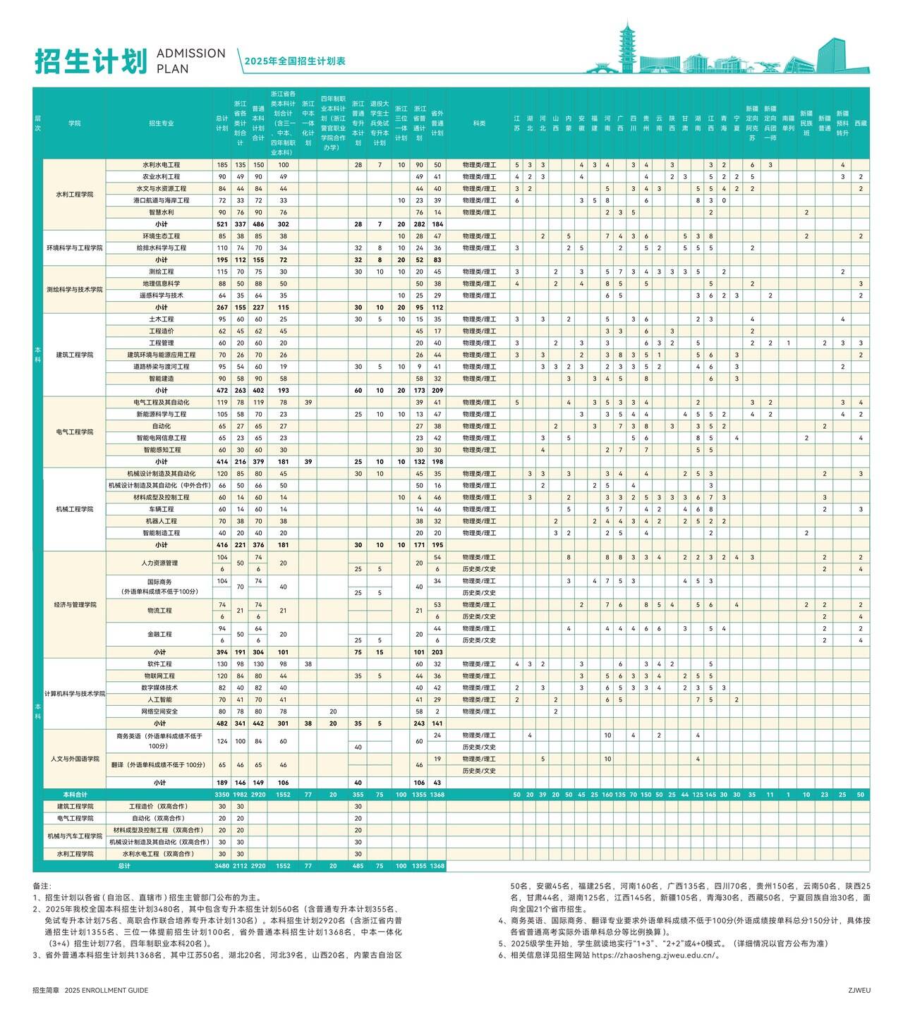 面向浙江省内招收普通本科计划1455名,其中提前批三位一体招生计划100名。面向浙江省外20个省(自治区、直辖市)招收本科计划1368名,其中2025年新疆预科生招生计划为25名。
