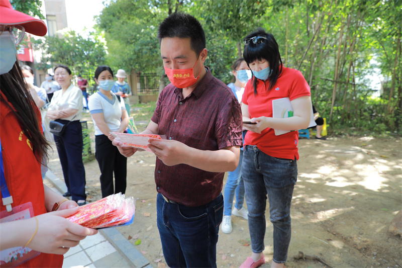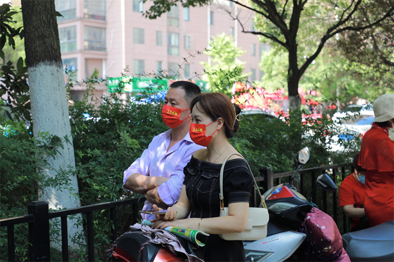 逢考必过、高考必胜……高考考点门口,除了旗袍和向日葵,各式红色口罩成为今年高考的新吉祥物。荷叶地金荷社区志愿者还贴心的为家长们准备了“幸运口罩”,深受欢迎。记者在现场看到,一盒口罩几分钟之内就被送考家长领完。“做好防疫,又增添好运,我们觉得很好!”现场家长说。