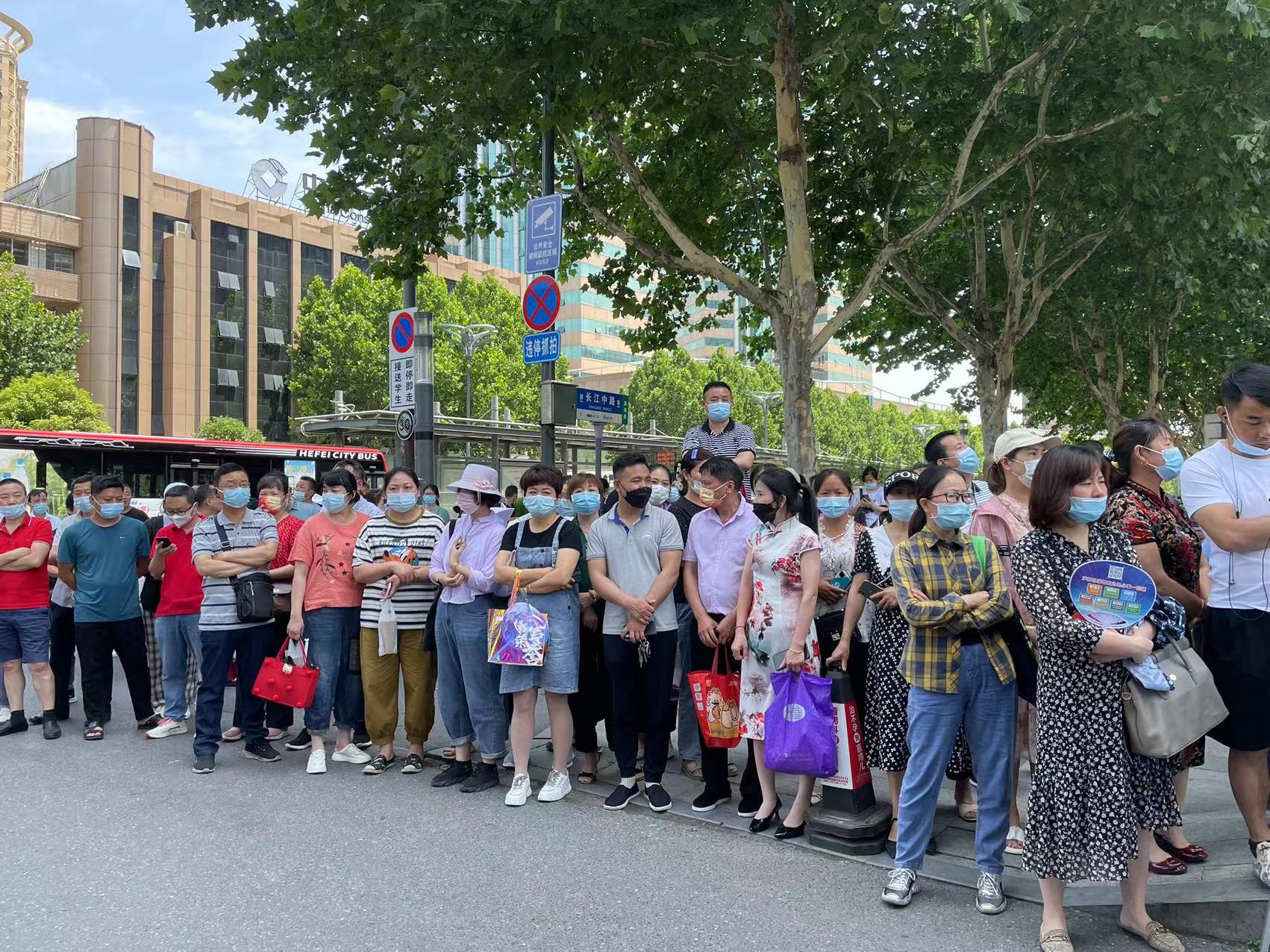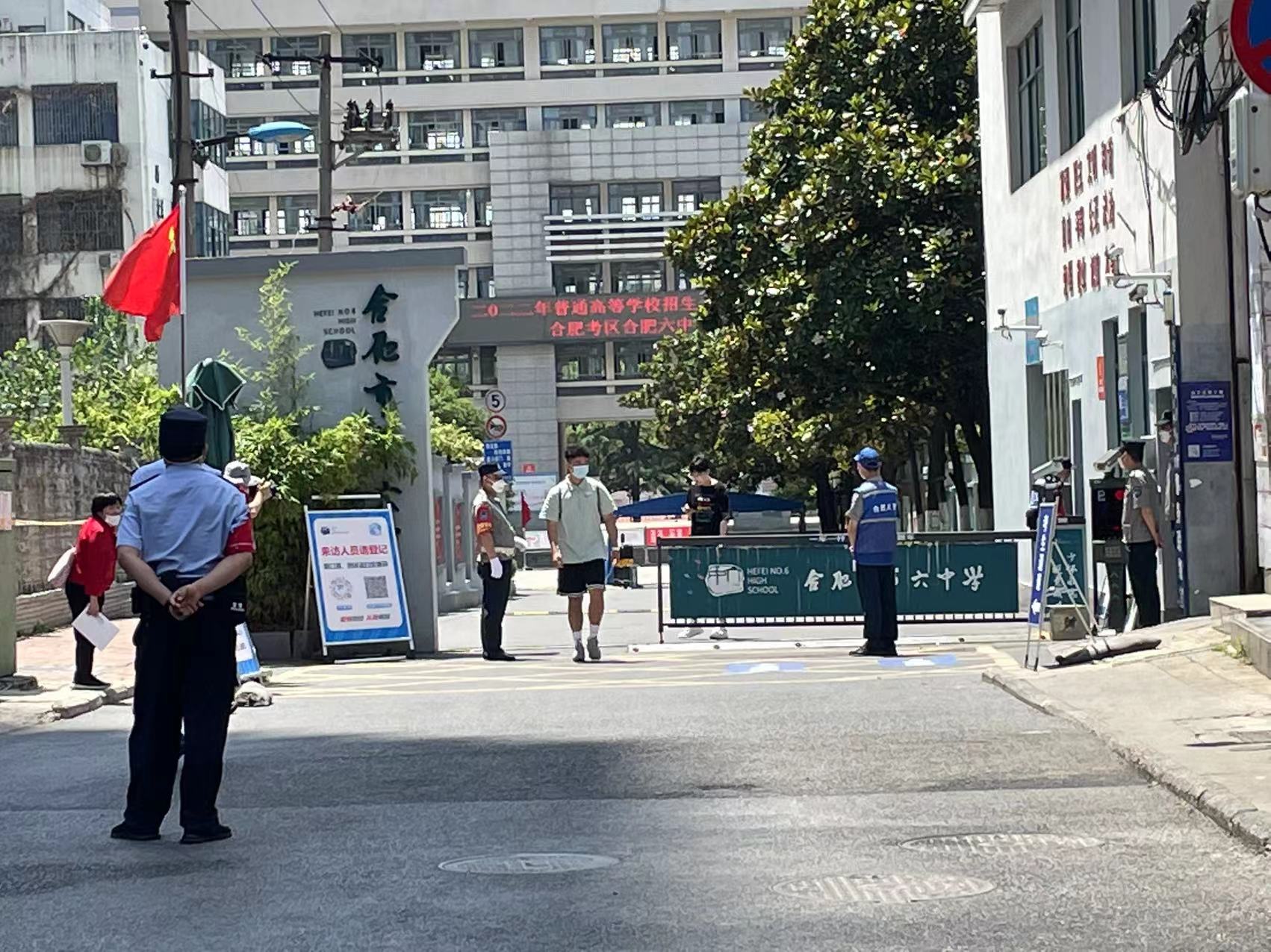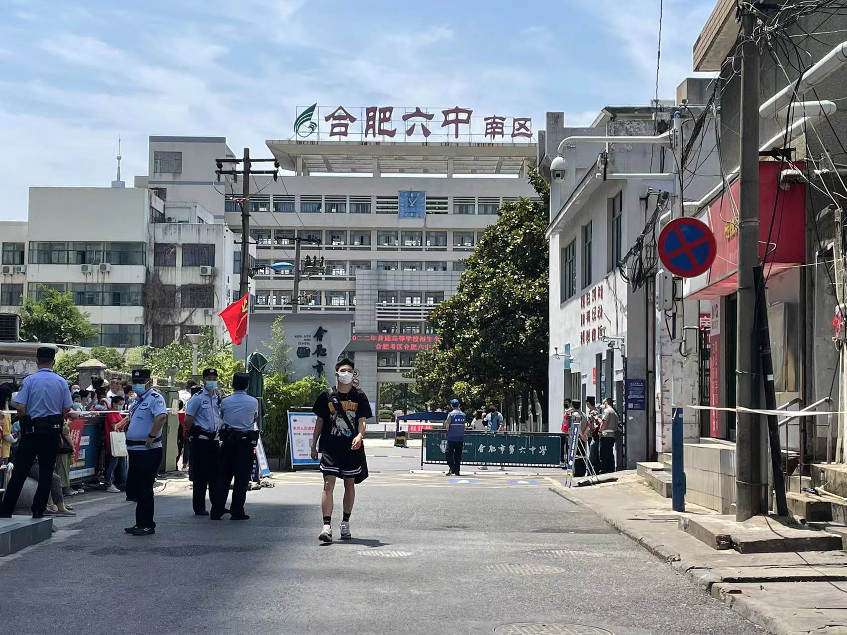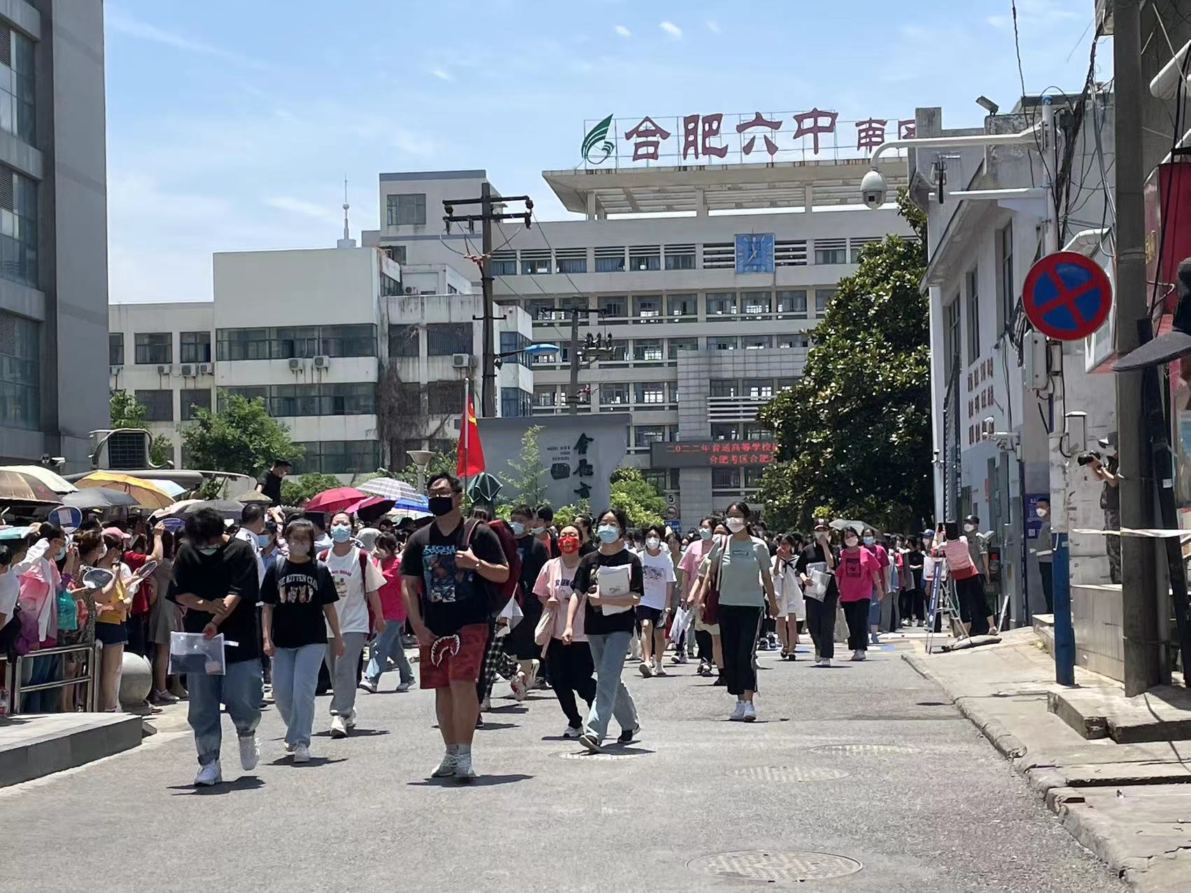 临近第一场考试结束,合肥六中考点外的家长正焦急等待。