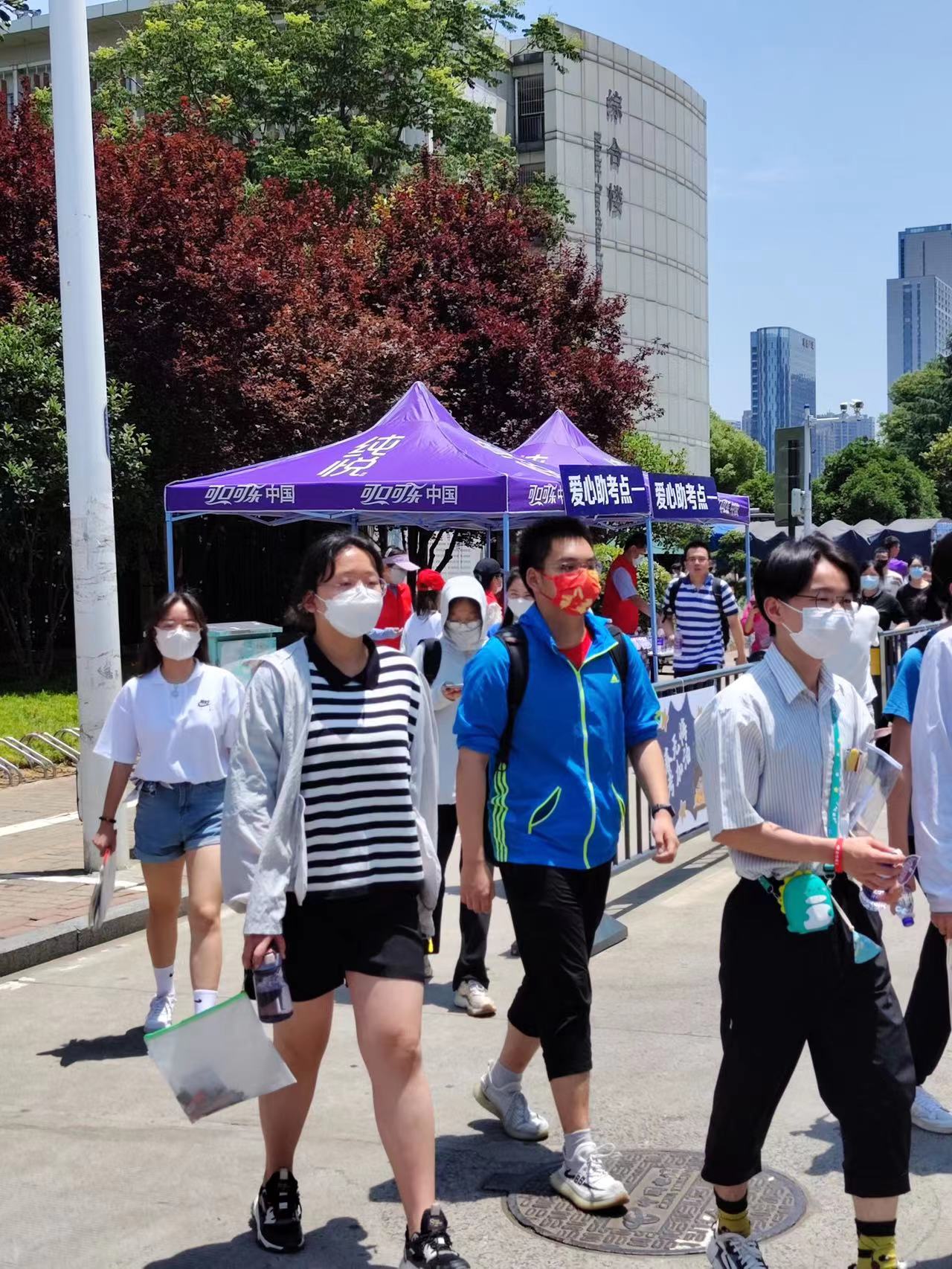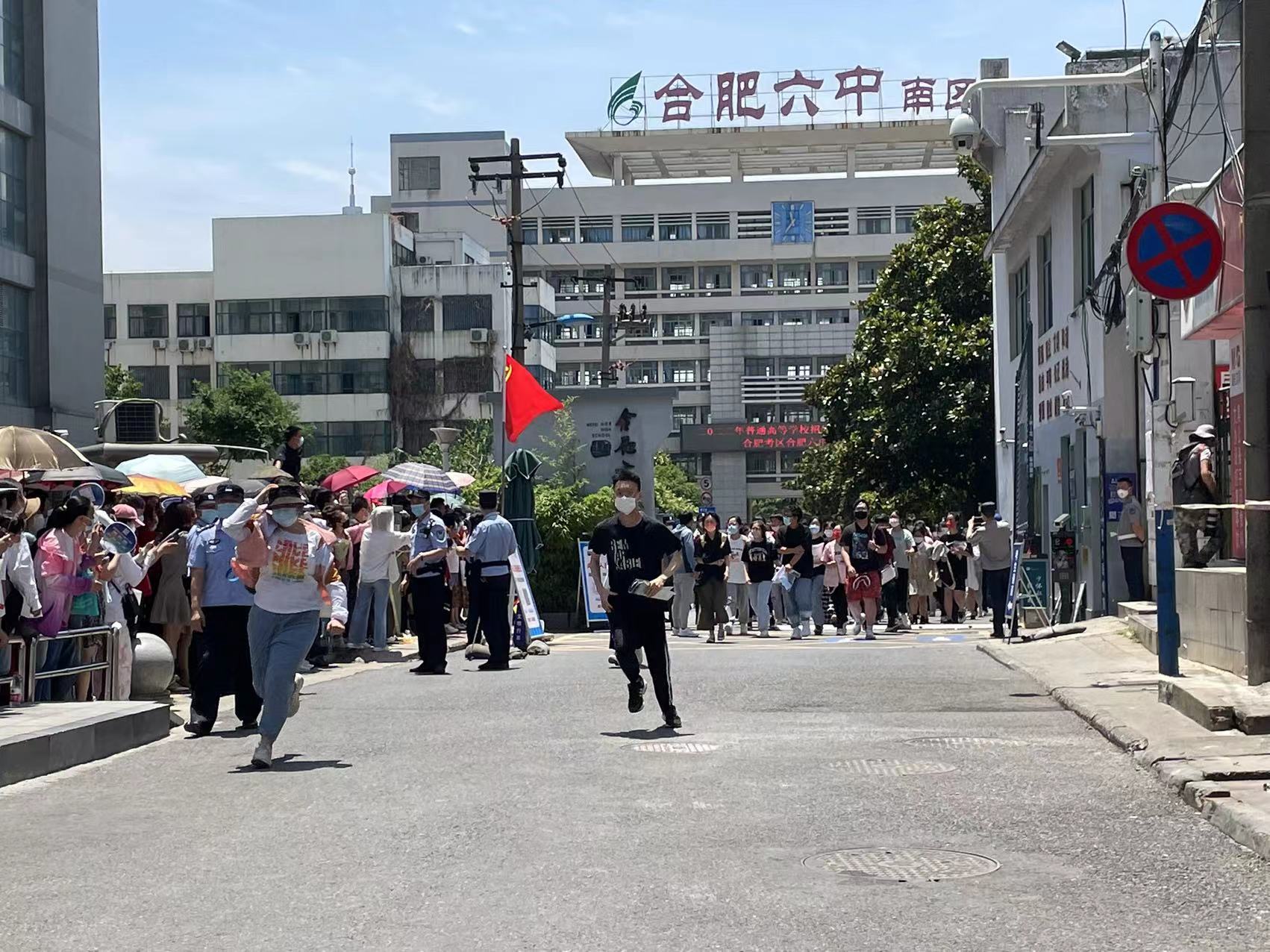 上午语文考试结束,合肥五十中天鹅湖校区考点的考生陆续走出考场。
