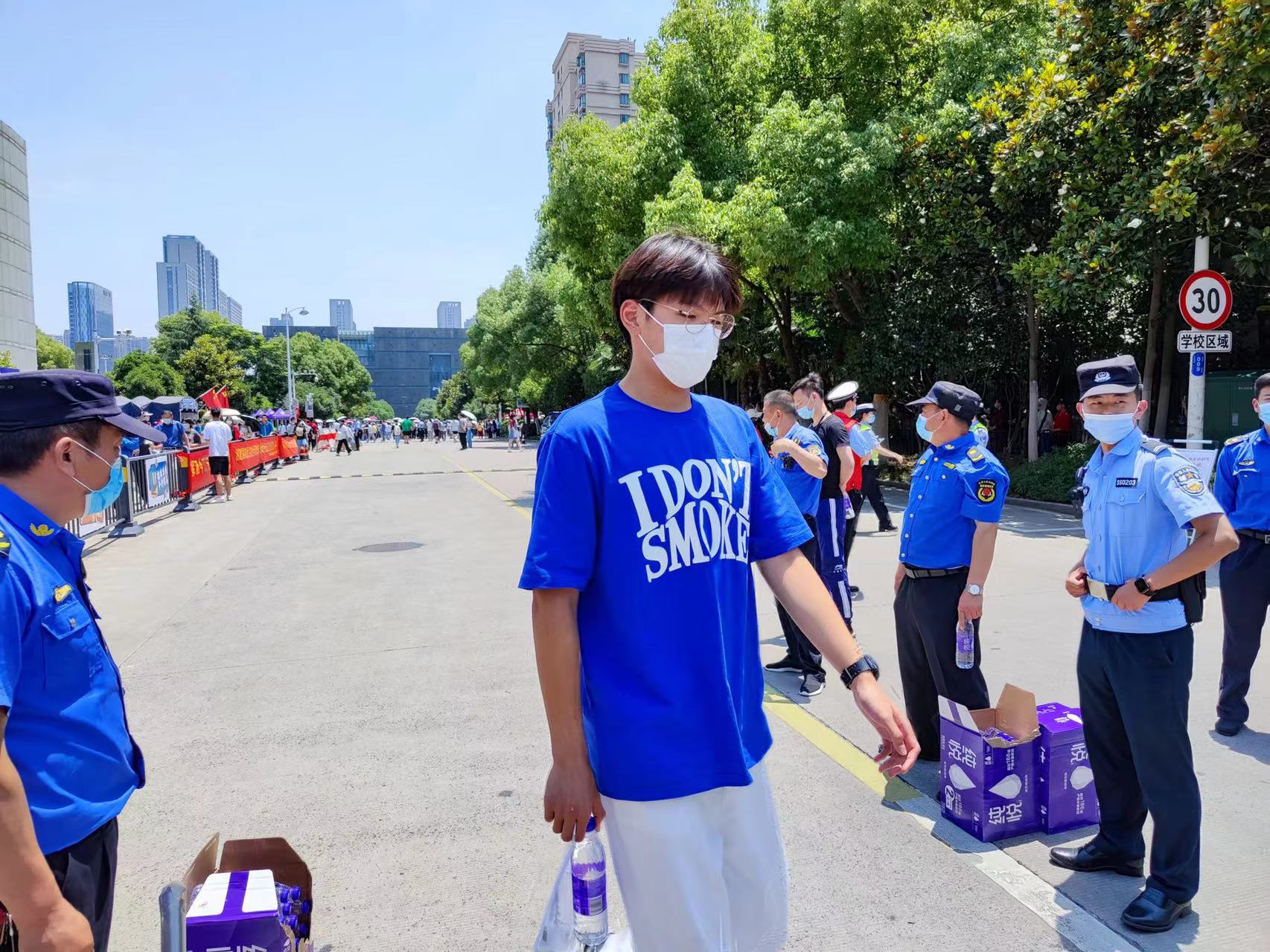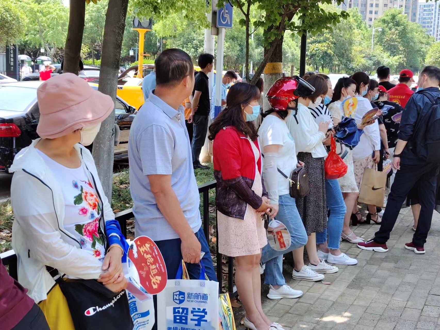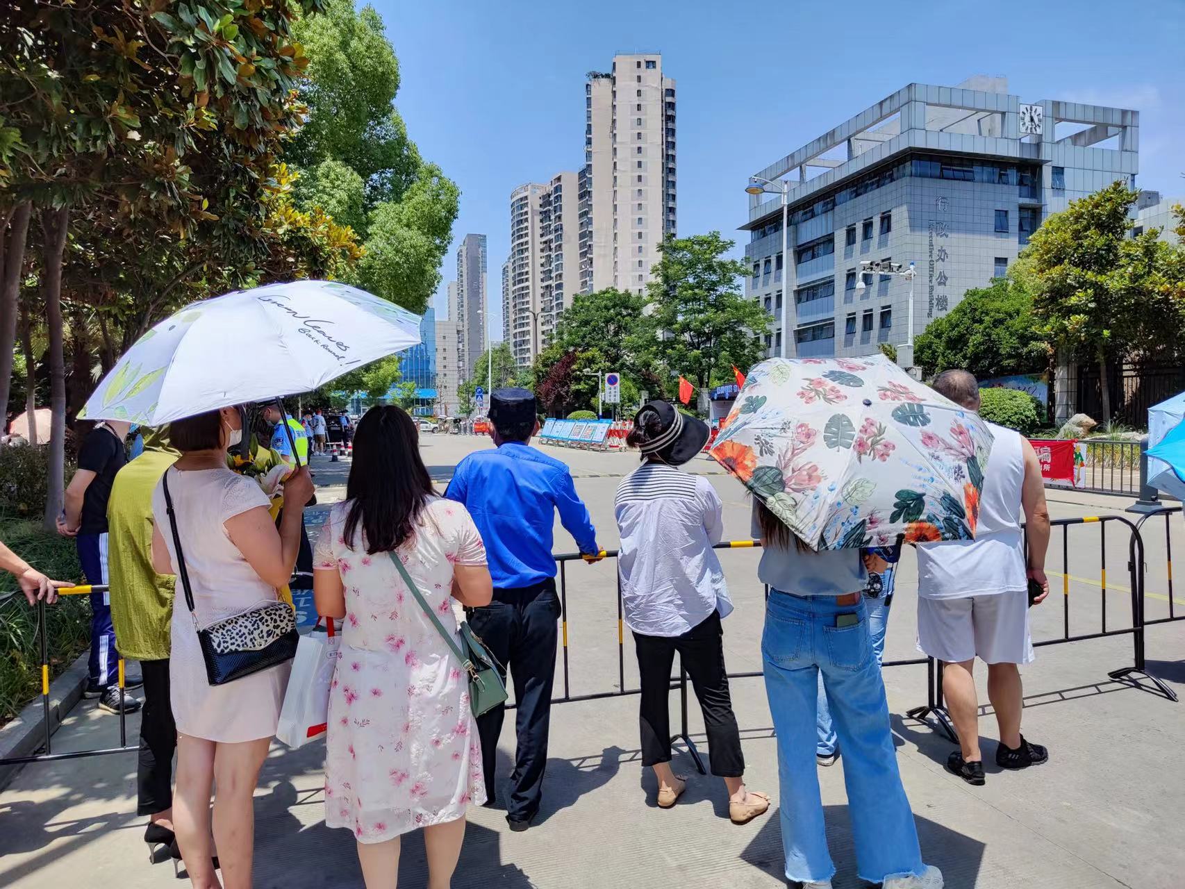 语文考试临近结束,在合肥五十中天鹅湖校区门口,考生家长们正在等待结束的铃声。