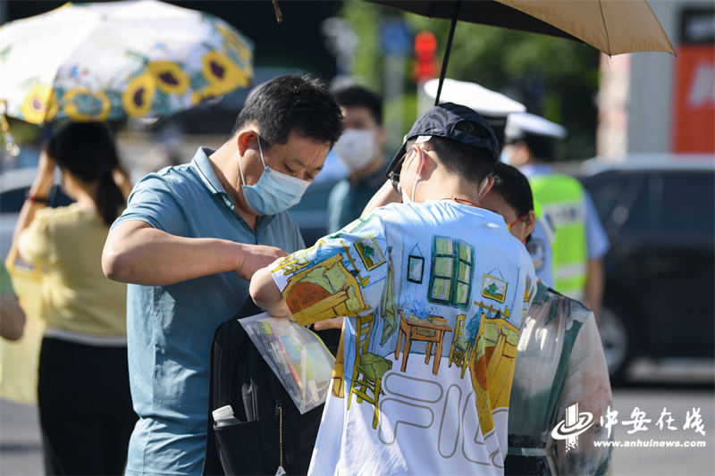 中安在线、中安新闻客户端讯 6月8日上午,合肥八中考点外,家长陆续把孩子送到了考场,一遍遍叮嘱着让孩子不要紧张,一边仔细地帮子女检查考试用品。家长们用充满希冀的目光给孩子加油打气,目送他们迈向人生的第一次大考。(记者 段玉)