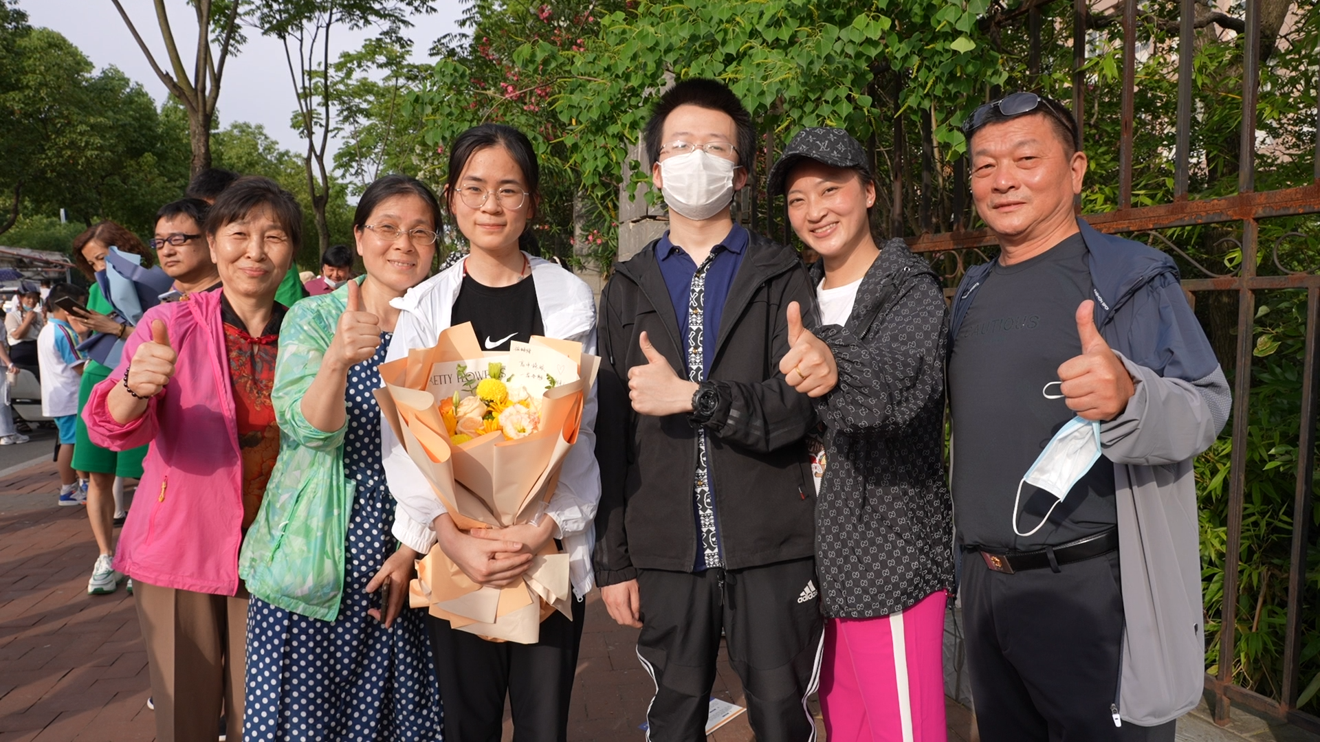 中安在线、中安新闻客户端讯 6月8下午17时整,随着最后一科考试结束铃声的响起,2022年安徽高考正式结束。在这样一个特殊的时刻,考生家长及亲朋好友们等候在各个考点,做起了“应援团”,一起迎接考生。本网记者在合肥市四十八中望湖校区门口,采访了多位考生家长,其中手捧鲜花迎接自己妹妹的骆女士告诉记者,他们家人早已定好了餐厅,就等着妹妹考试结束。(记者 程昊)