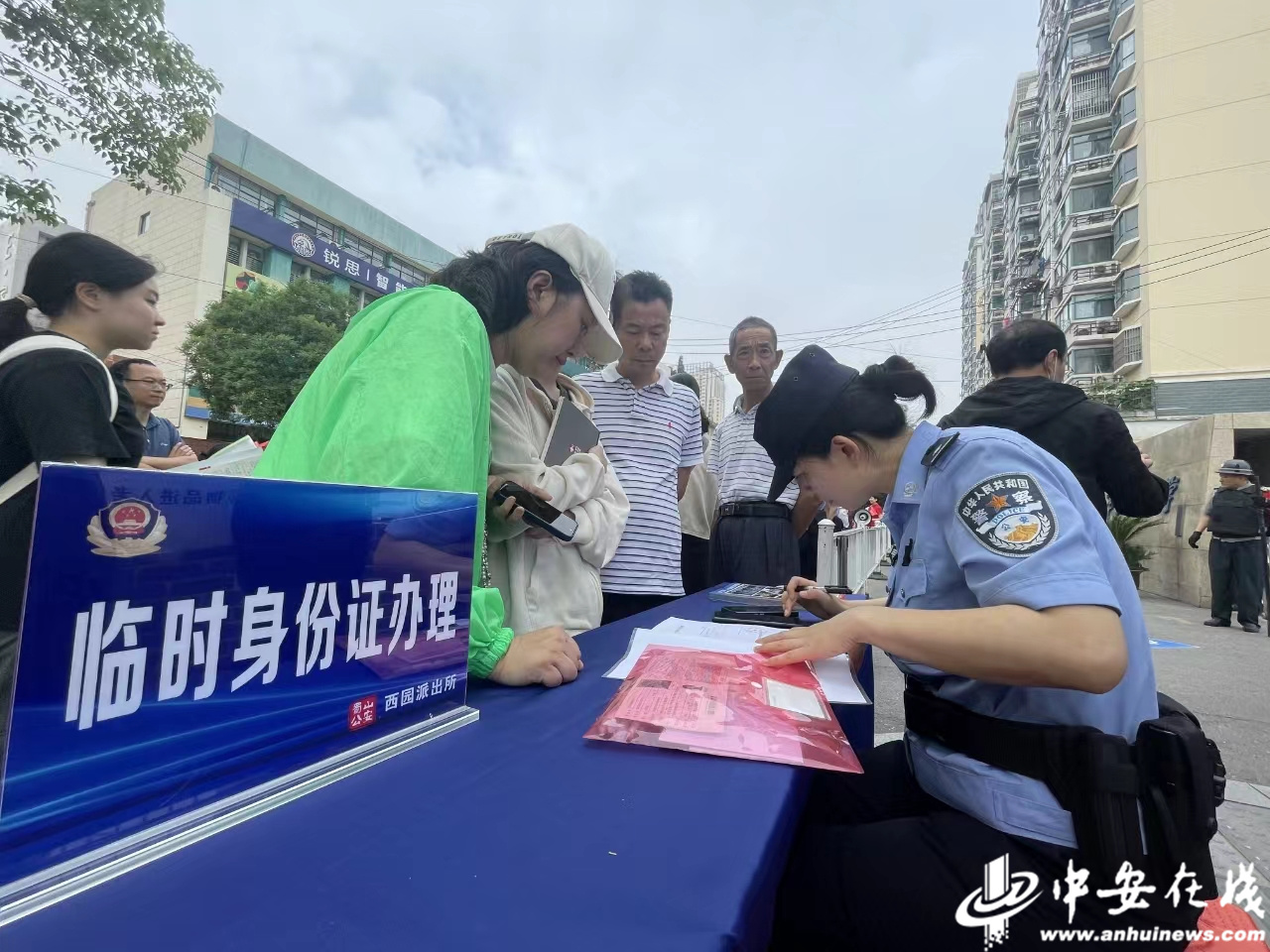 6月7日早上8时10分,西园派出所民警张金梅办理了五十中西校贵池路校区第一张临时身份证,及时安抚了考生情绪,确保考生顺利进入考场。(记者 张毅璞)