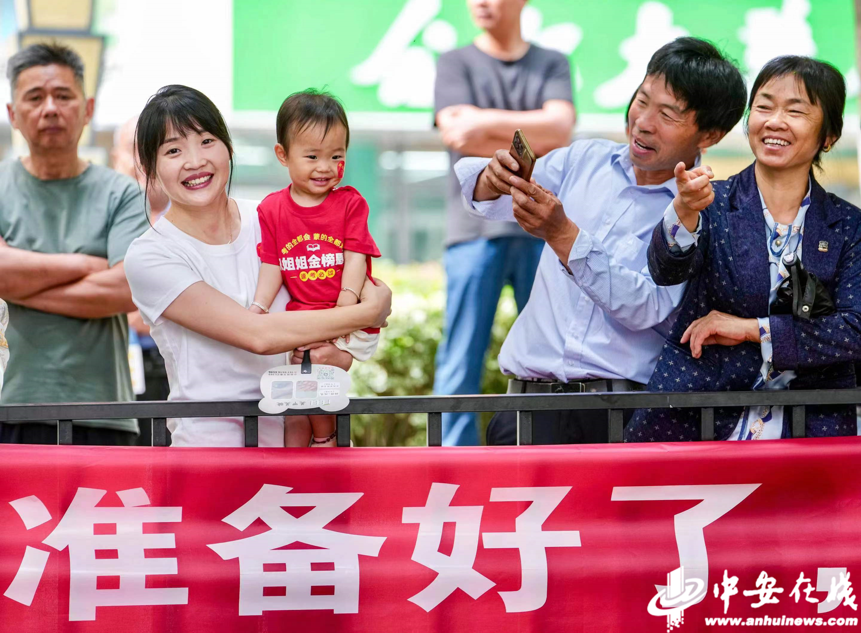 合肥市第五十中学西校教育集团贵池路校区考点,家长手拿向日葵祝愿考生一举夺魁。