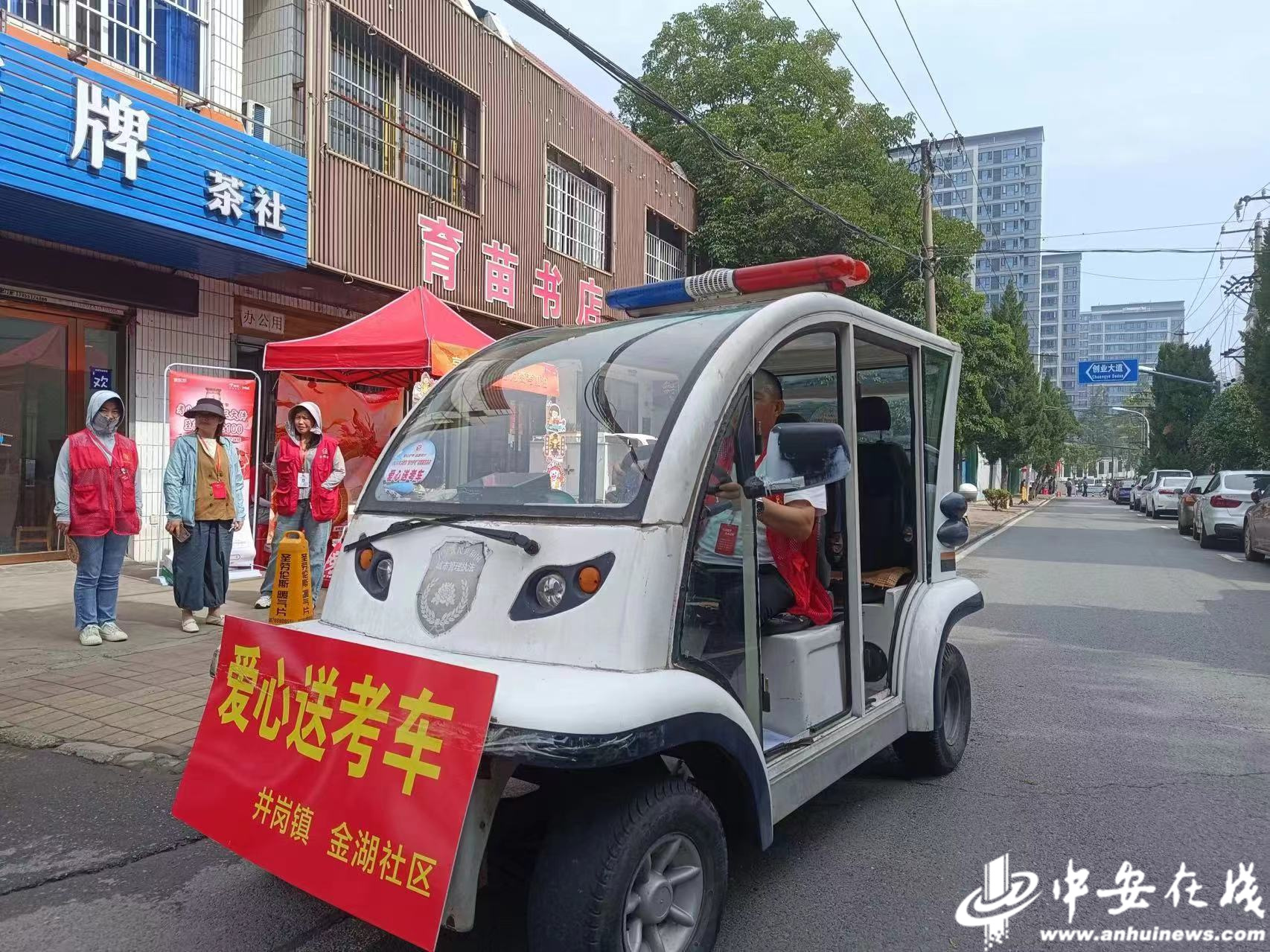 合肥市蜀山区井岗镇金湖社区专门准备了爱心送考车。(通讯员 季云冈)