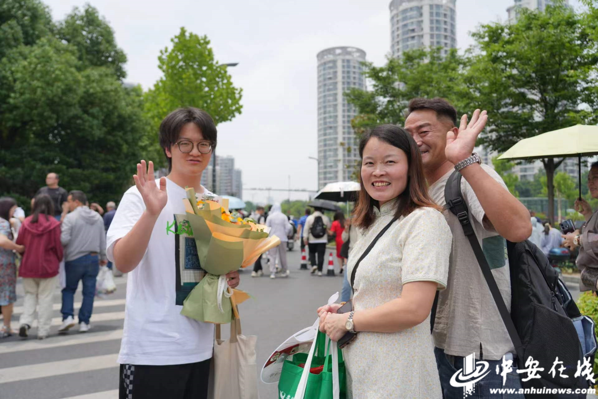 6月7日上午考试结束,考生陆续走出考场。部分家长为考生送上鲜花,为孩子加油。(记者 吕文卫 许梦宇)