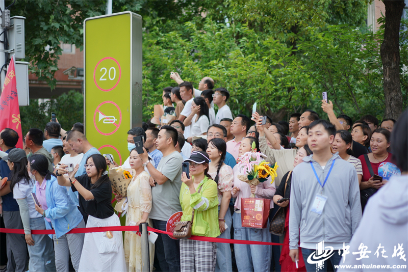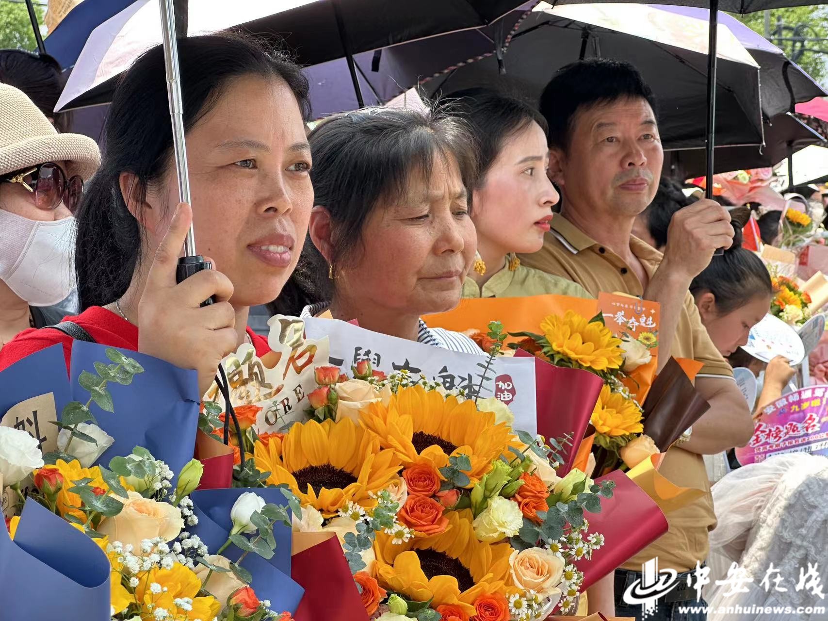 6月9日,合肥七中考点,亲友们以不同方式迎接考生。(记者 徐慧冬)