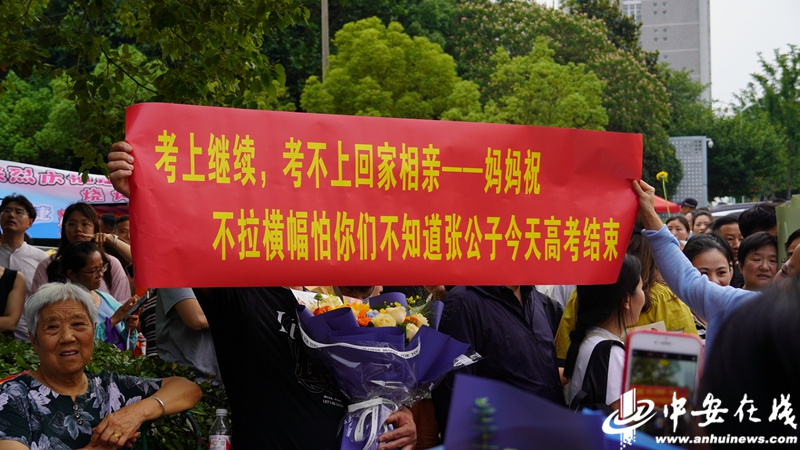 6月9日下午,合肥四十六中门口,等候的家长为孩子点赞加油。