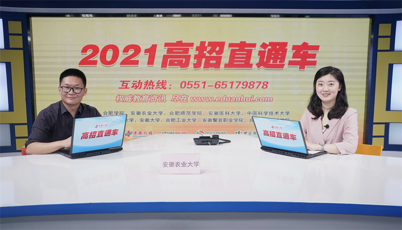 曹玮:同时我们学校还有一个非常重要的招生咨询平台,就是我们的本科招生信息网,大家搜索页面,搜索安徽农业大学,有链接直接转到本科招生信息网,也可以搜索我们学校的招生微信公众号,安农招生,里面有我们所有有关招生的资讯、分数线、招生计划,包括各学院的专业情况,里面的招生政策都有,非常方便和快捷,希望考生和家长更多的了解一下。。