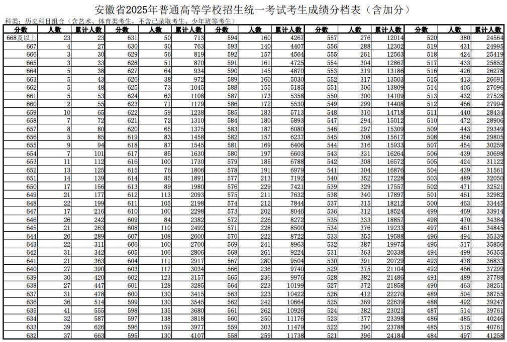 2025安徽高考考生成绩分档表发布了!