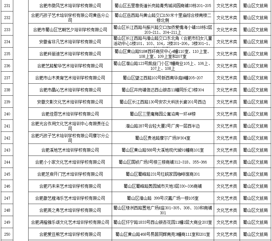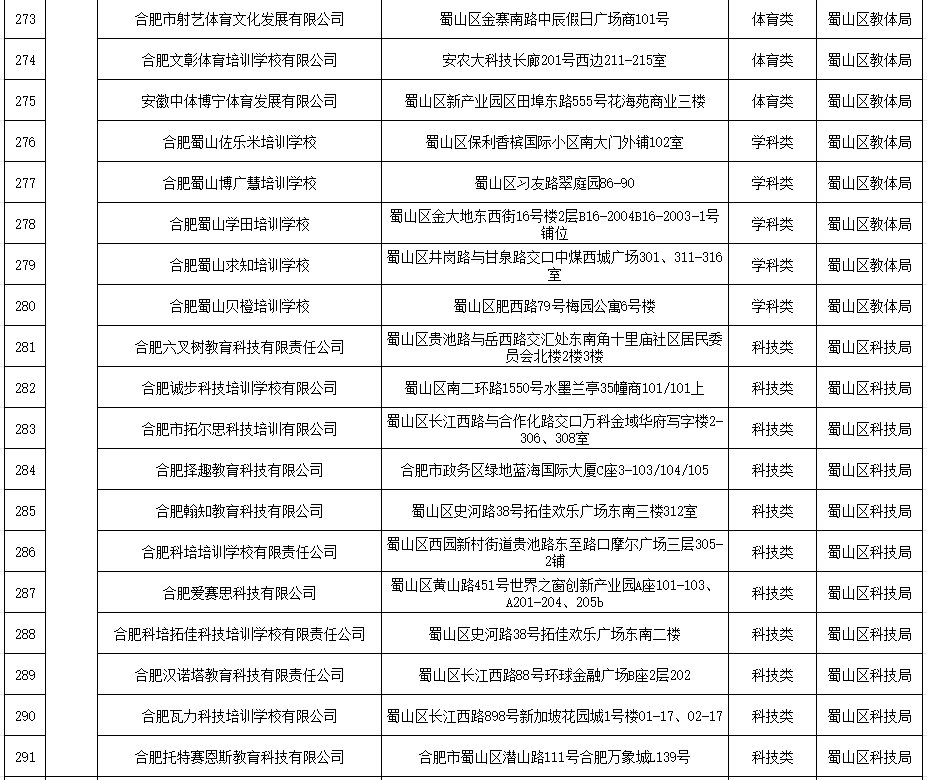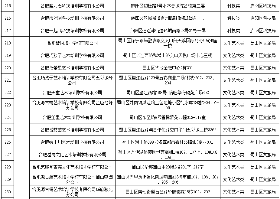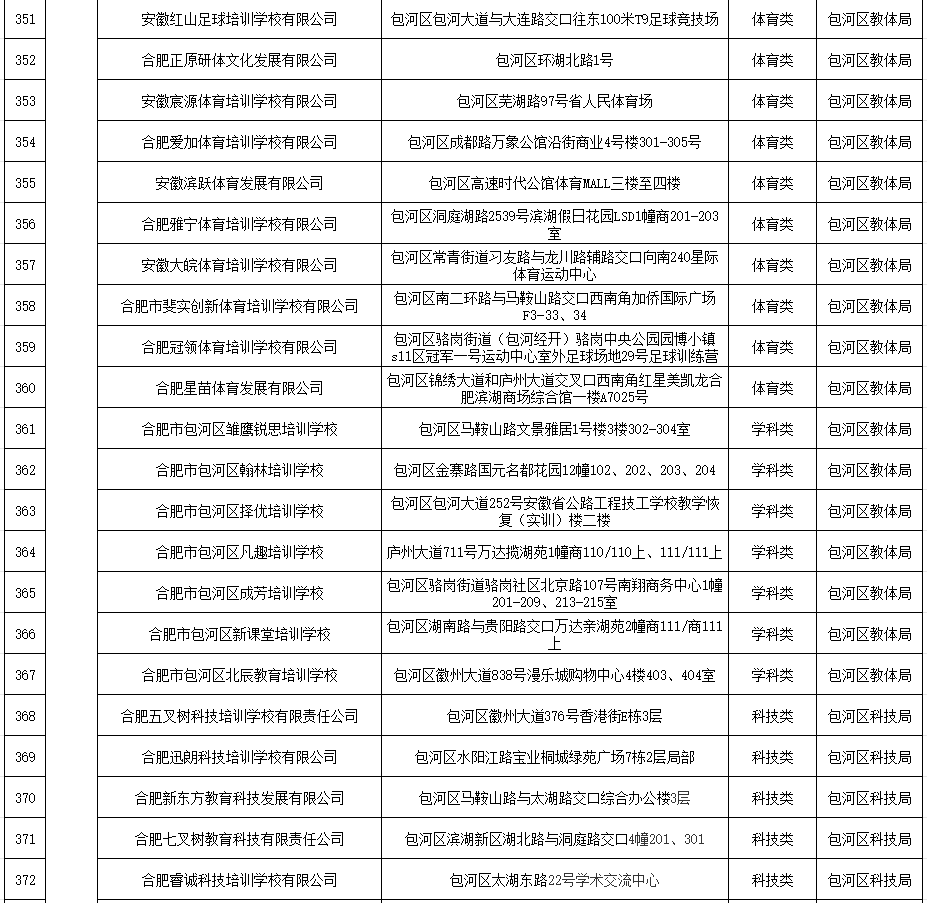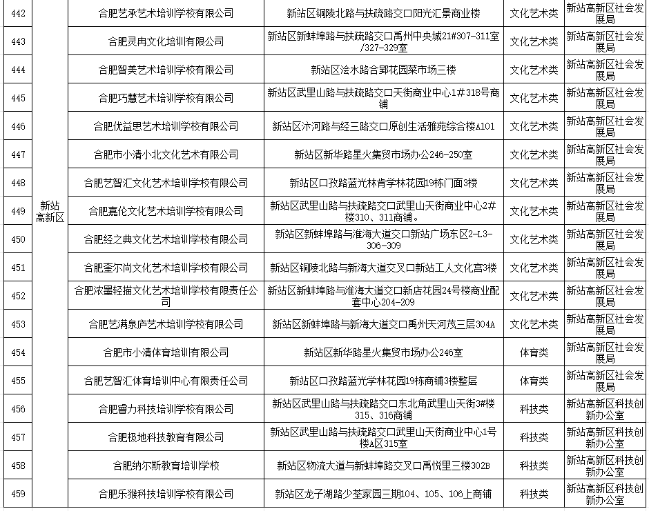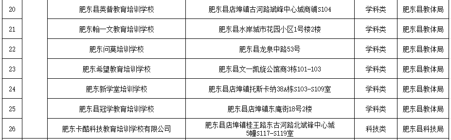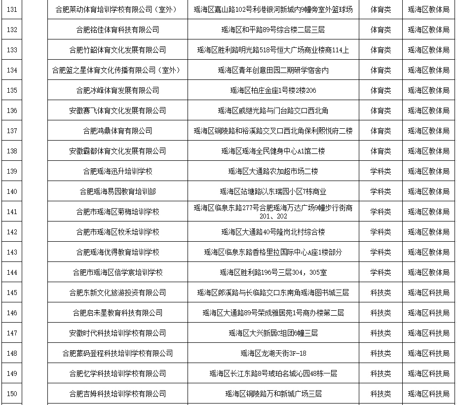 在此,我们真诚提醒广大家长:尊重孩子的成长规律和教育规律,保障孩子睡眠、运动和自主成长空间,如确有需要,请根据孩子的兴趣爱好和实际需求,科学理性选择“白名单”中的校外培训机构。请通过“全国校外教育培训监管与服务综合平台校外培训家长端”APP,或到现场查看培训机构是否公示有效证照(学科类培训机构查看办学许可证,非学科类培训机构查看设立核准书、民办非企业法人登记证或营业执照)、培训内容、教师资质、收费情况,查看机构办学地址是否与审批地址一致。凡未列入合肥市“白名单”的校外培训机构,均未经有关部门审批设立,请广大家长认真鉴别,避免自身合法权益受损。