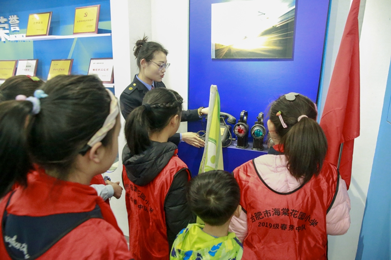 活动中,合肥东站精心组织、安排专业讲解员带领队员们先后参观了合肥东站警示室、调度大厅、监控室等场所,讲解员生动的讲解给队员们留下了深刻的印象,最后队员们同合肥东站代表合影留念。