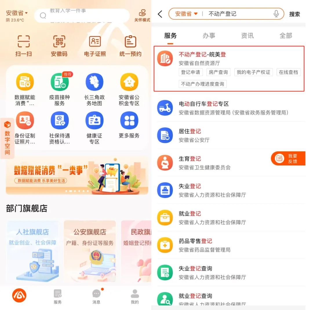 “互联网+不动产登记”统一服务平台“皖美登”依托“皖事通”APP 提供不动产登记相关业务掌上办理,支持在线申请、在线查档等,助力不动产登记业务办理减跑动、减时间、优体验。