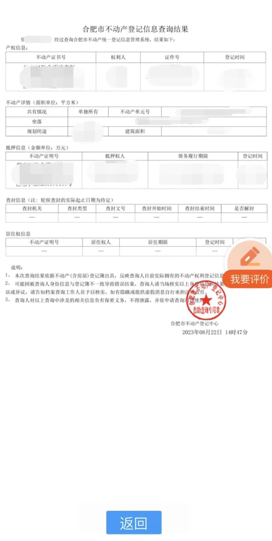 在信息查询结果页面可查看不动产登记信息。长按可保存不动产登记信息查询结果。