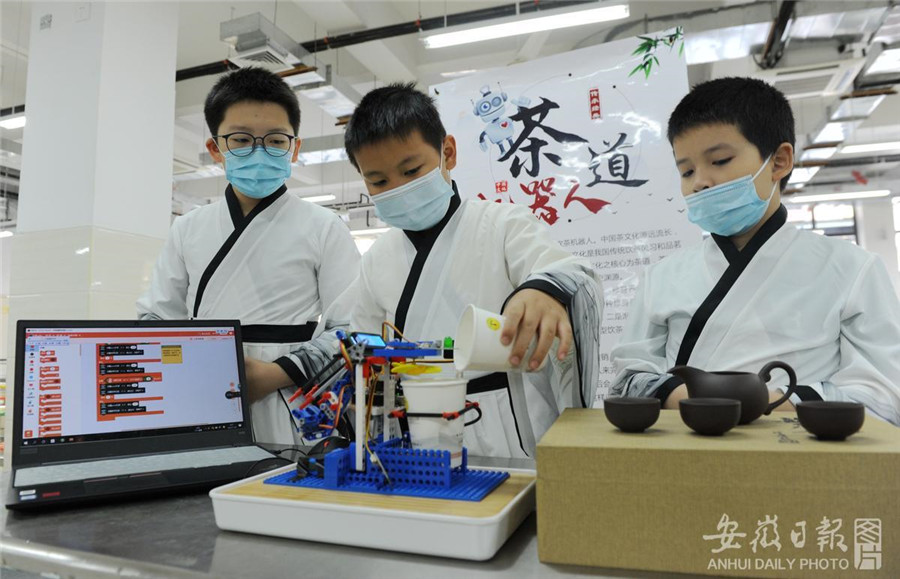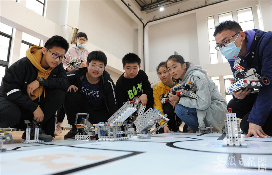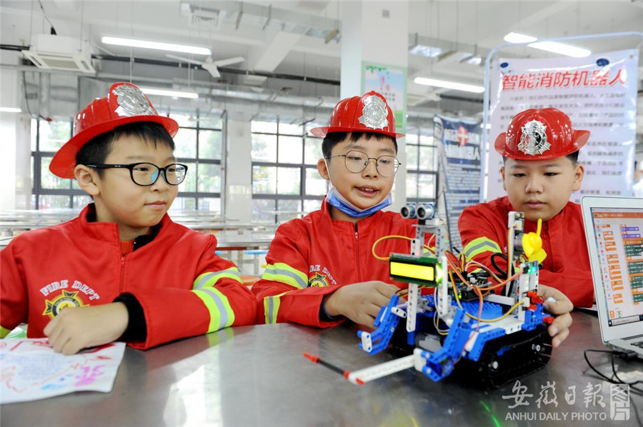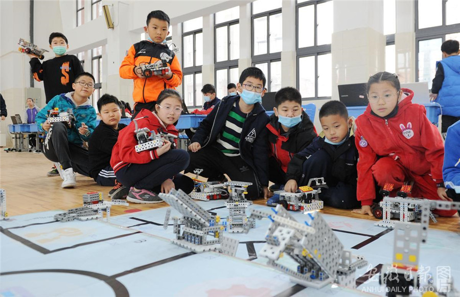 11月8日,合肥市瑶海区第五届青少年机器人竞赛在大通路小学长乐校区举行,来自全区30多所中小学的300多名青少年参加了机器人创意、机器人综合技能等5个项目的比赛,共享科技的魅力。通讯员 熊伟 摄
