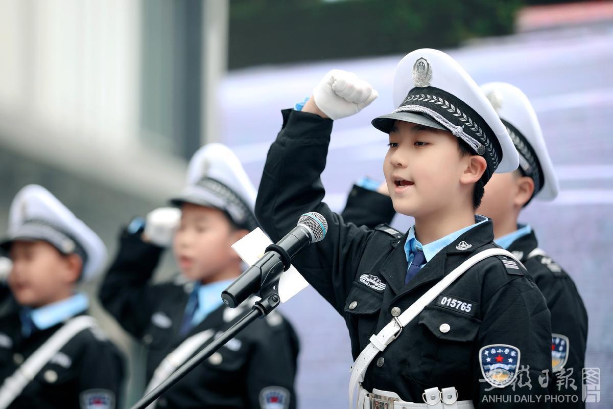 “小交警”代表全校师生宣誓,自觉遵守交通规则,争做文明出行的好学生。