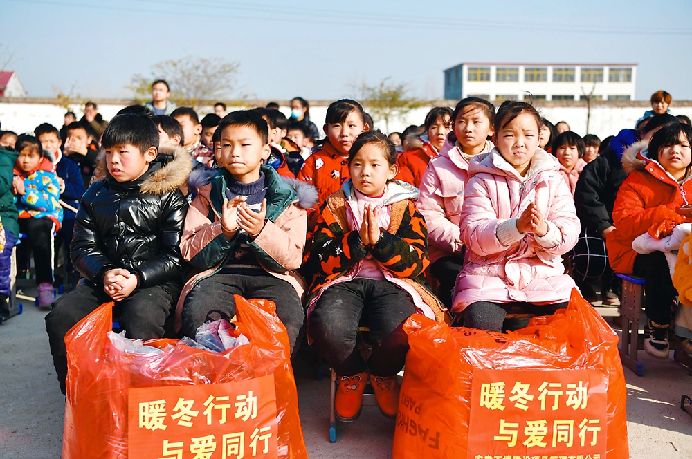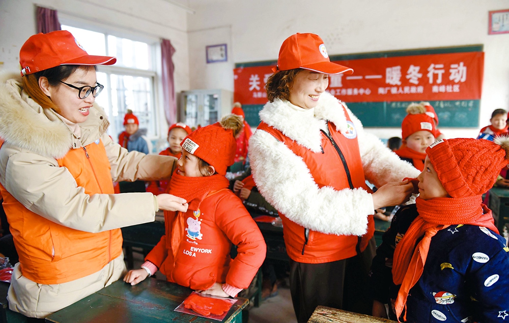 12月24日,马鞍山市慈善总会、当涂县五彩社会工作服务中心联合含山县陶厂镇民政办、南峰社区走进陶厂镇关镇小学开展“五彩送温暖 志愿暖冬行”活动,为留守儿童送上暖冬物品。通讯员 欧宗涛 张三五 摄