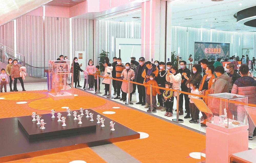 2月13日,大年初二,安徽省创新馆内,市民正在观看机器人表演,感受科技创新的魅力。