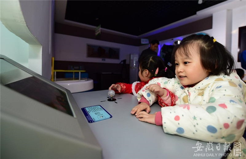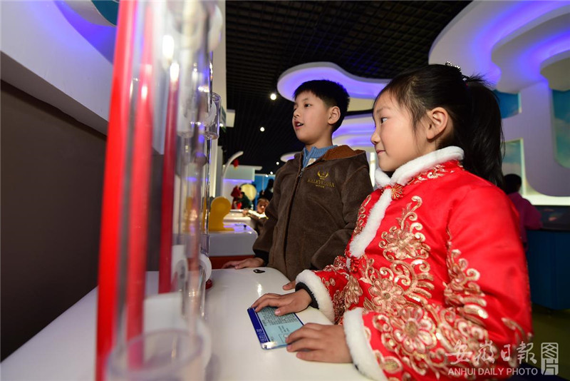 2021年2月13日,小朋友在合肥市庐阳区大杨镇夹塘社区科普馆参观体验。春节期间,合肥市庐阳区大杨镇夹塘社区科普馆正常对外开放,社区小朋友可以到科普馆参观体验,感受科学的魅力。通讯员 葛传红 吴斌 摄
